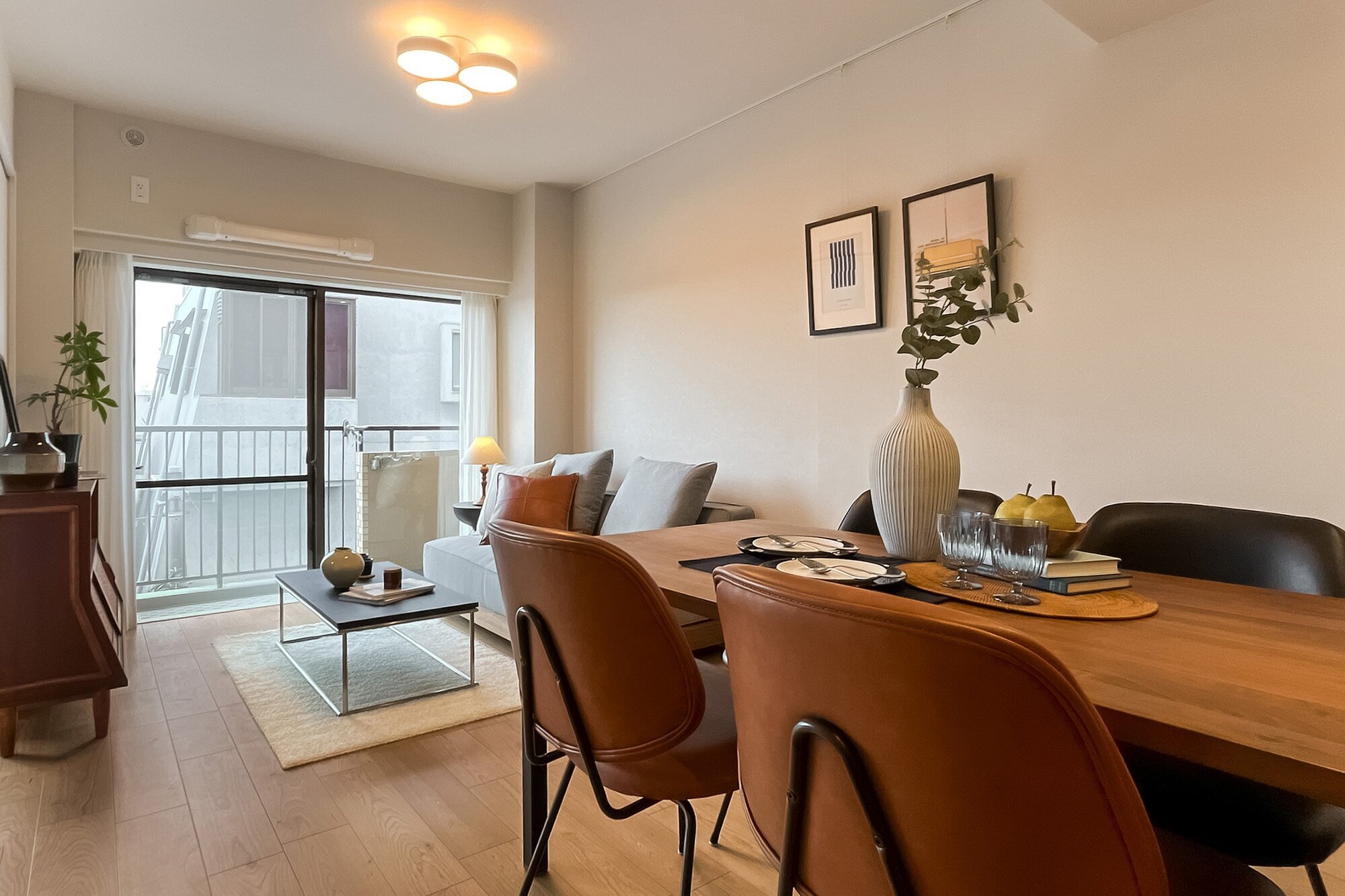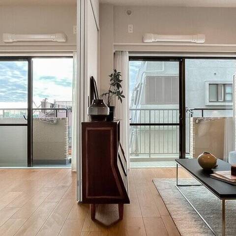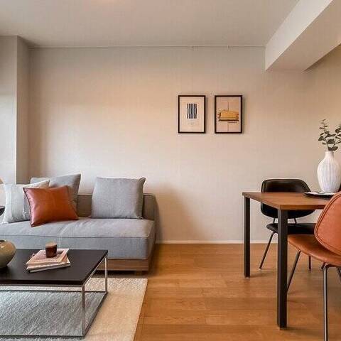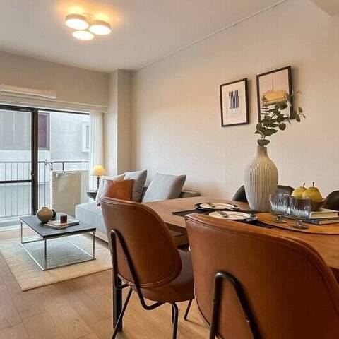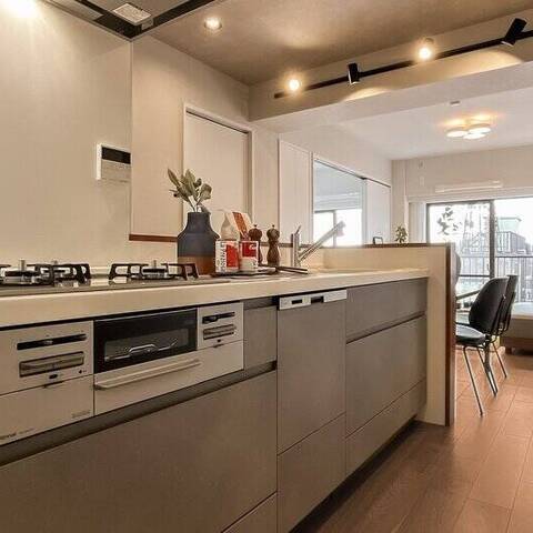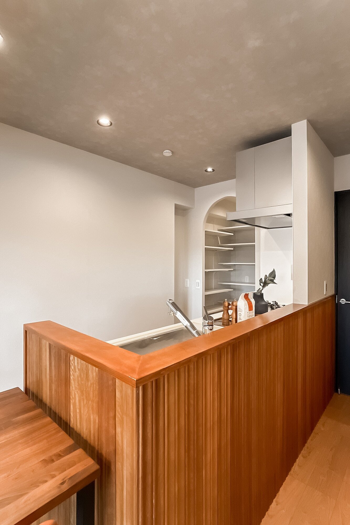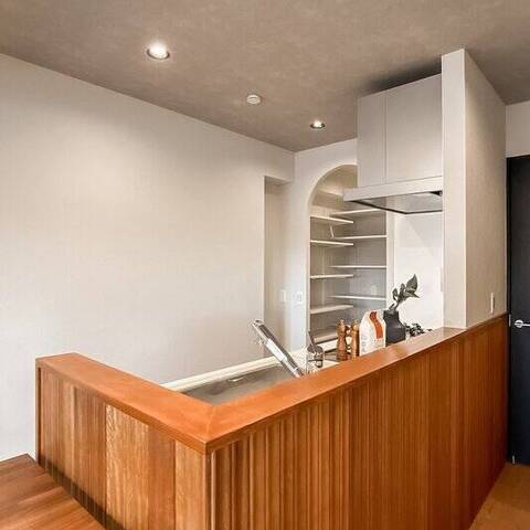 暮らしの舞台は “学芸大学エリア”。キッチンを彩る木のリブ材や、アールを描く開口が、クラシカルなリズムを日常に運びます。料理をしながら会話が弾み、週末には友人が集まる。そんな光景が自然と思い浮かぶ住まいです。