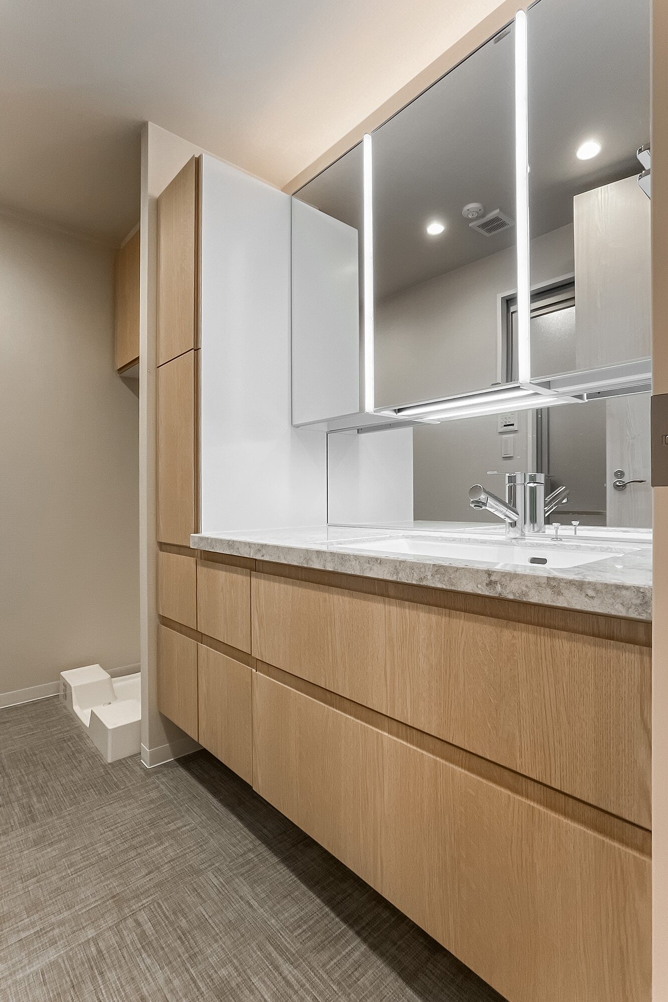 淡島通りから、ほんの少し高台へ。閑静な住宅街 “代沢一丁目” に建つ2004年築のレジデンスが舞台です。100㎡弱の住まいは南北に開口があり、心地よい風が2匹の鼻先をくすぐります。緑道に公園、今日はどこへ散歩に出ようか。