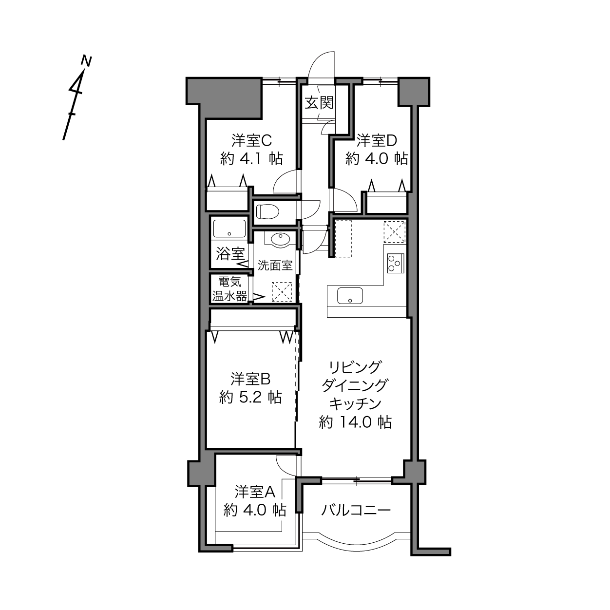 - 飼育可 (細則あり ※小型犬・猫可/1住戸2匹まで/小型犬は長さ70cm、縦横高さ合計90cmのゲージに入る大きさ)