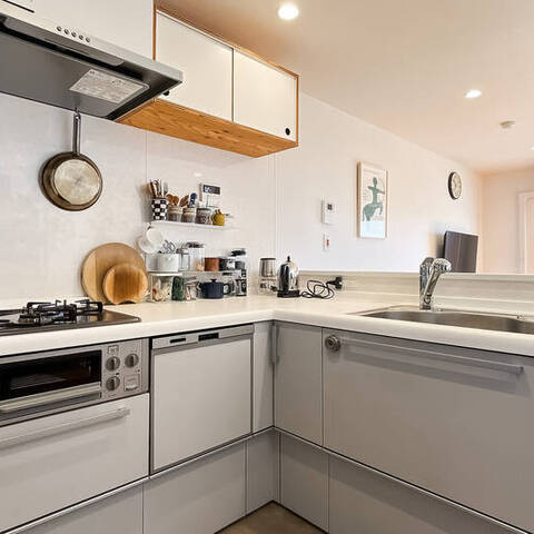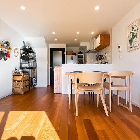 玄関扉を開けると、暮らしは静かに上下へとひらいていく。家族が集う時間と、それぞれが過ごす時間を、階でやさしく分けるメゾネットの住まい。「経堂」の穏やかな街に、戸建てのような距離感と安心感を重ねて。日々の家族の営みが、自然と整う一室です。