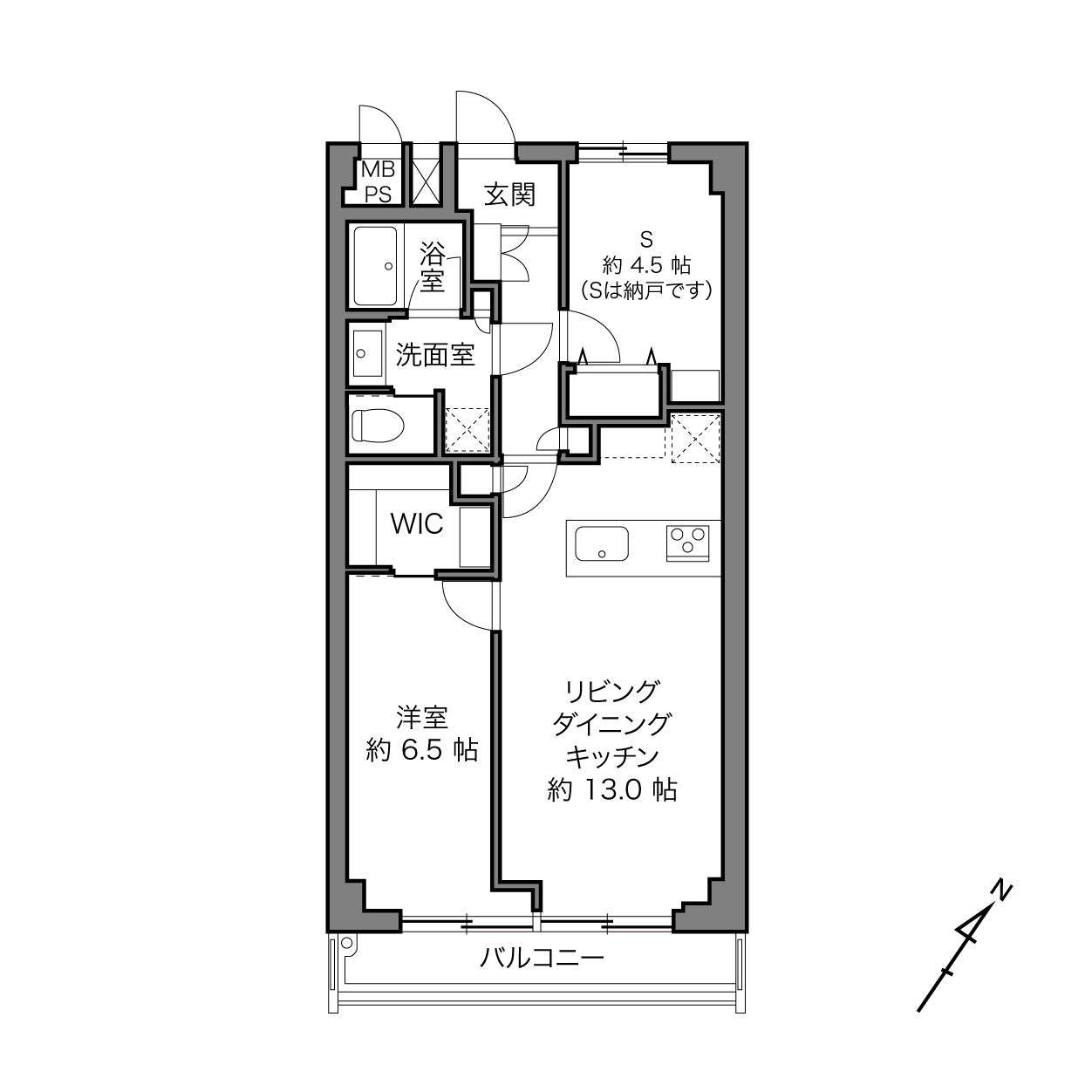 56.39㎡ 1LDK+S[サービスルーム(納戸)]
