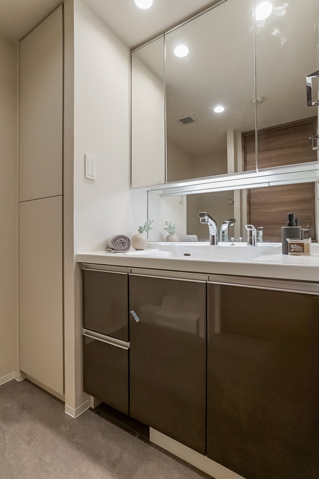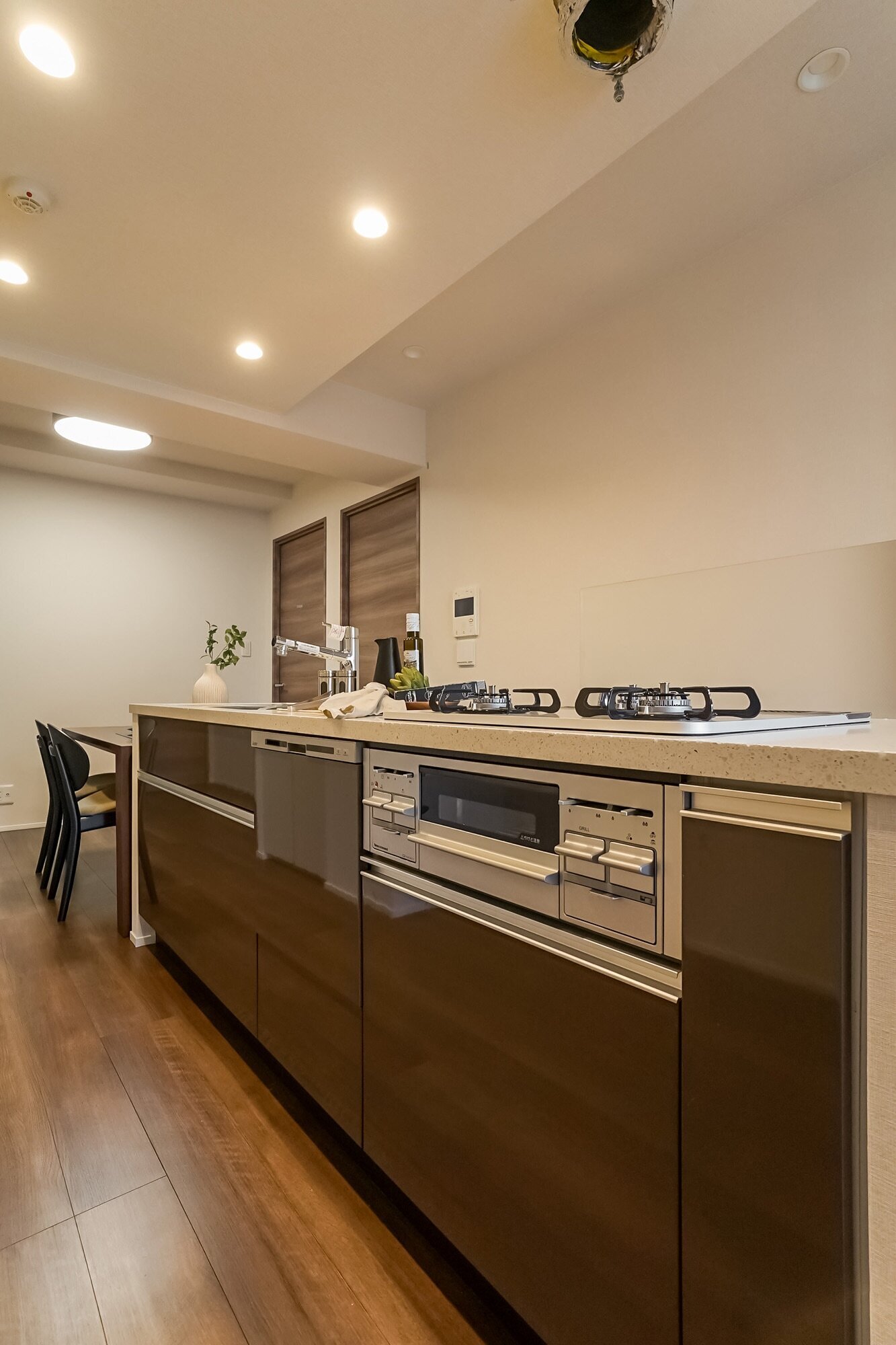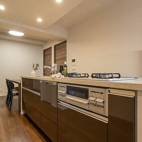 2017年竣工の瑞々しい器を、あえて今仕立て直す贅沢。 “今日の一針” の教え通り、今手を加えることが将来の大きな安心と住み心地の良さへつながります。アイランドキッチンを囲む家族と2匹。良質な素材を活かし、自分たちに馴染ませる。そんな知的な暮らしの選択がここにあります。
