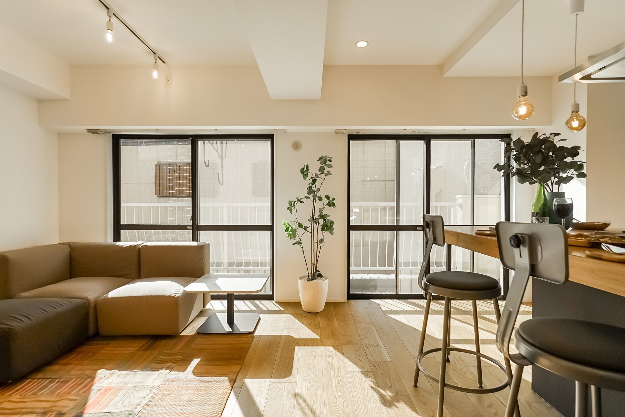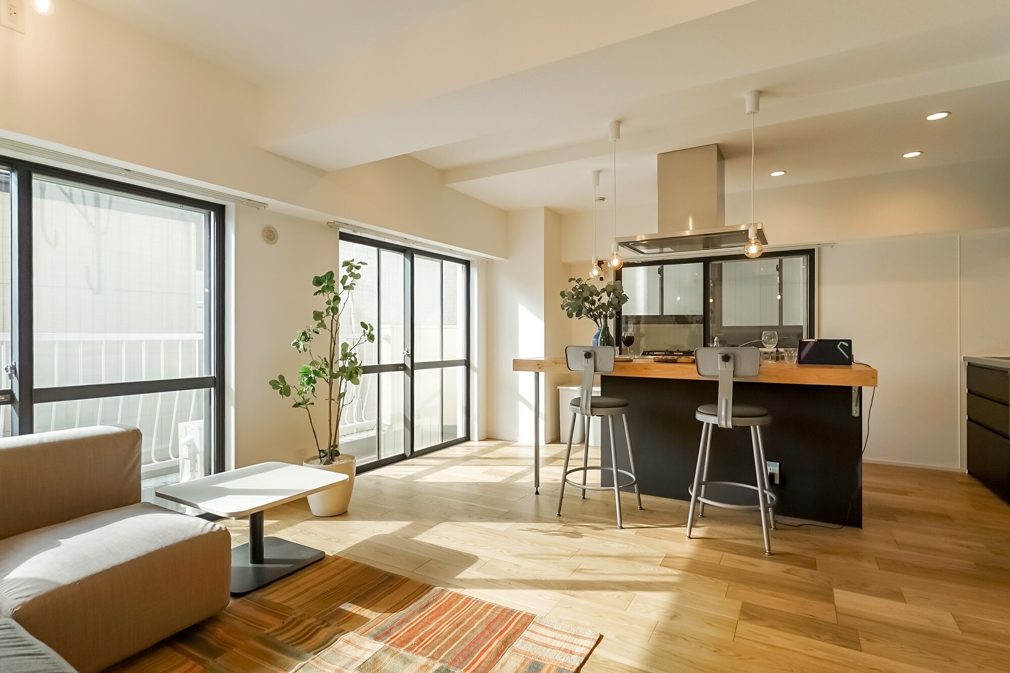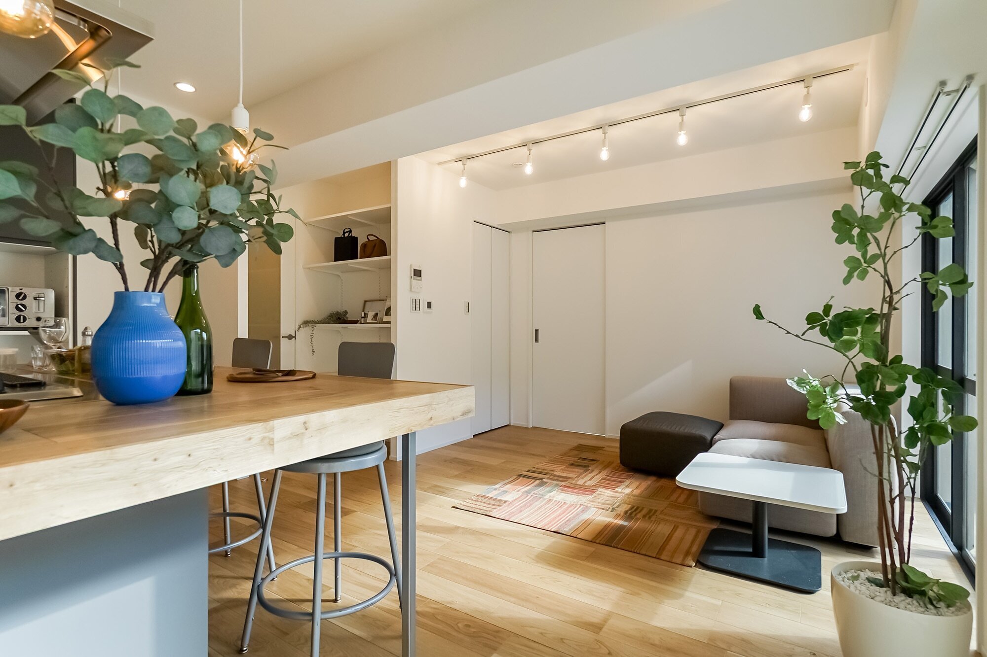 人が集まる理由は、きっと “おいしい” のそばにある。近場で食材を調達し、寄り道のおやつも楽しみながら陽だまりの部屋へ帰宅。買ったものを大きなカウンターに並べ、つまみ食いしつつ準備して、さぁいただきます! 気づけば夕暮れ、楽しい時間はこれから。
