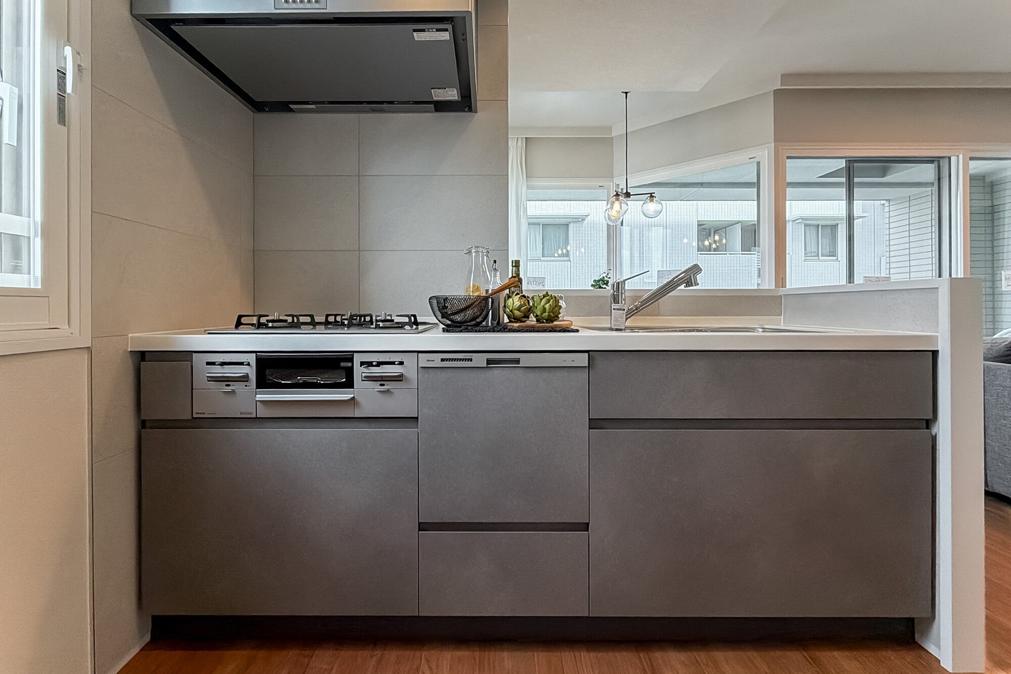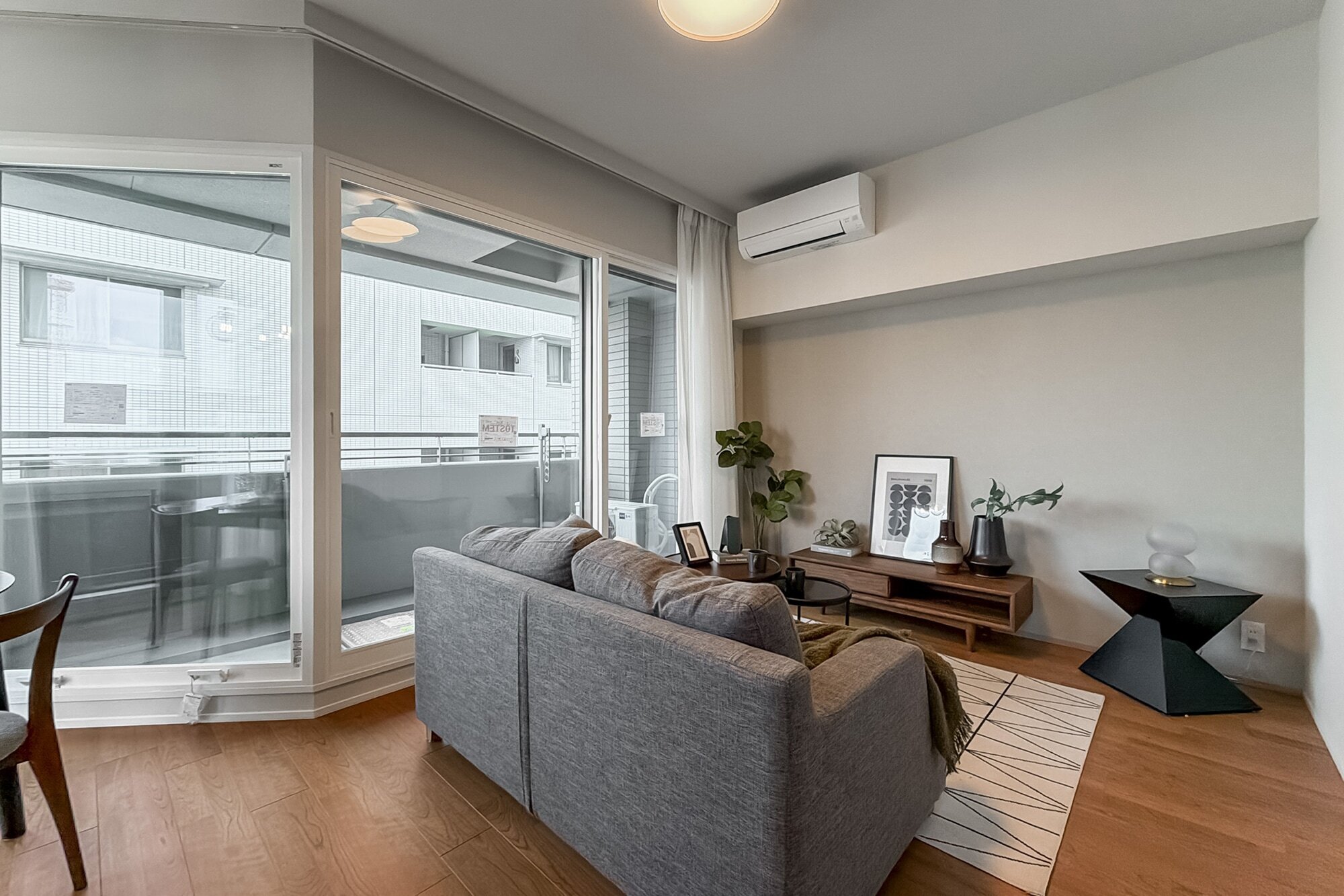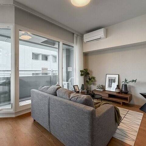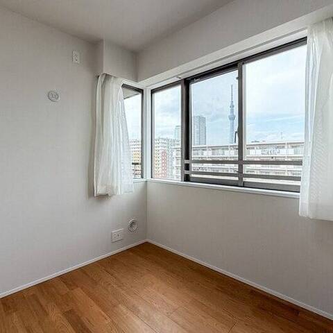 多角形のLDKに、タイルやアクセントクロス。 "遊び心" のある形や素材が重なることで、食事と寛ぎの場が自然に分かれ、空間に豊かな表情が生まれています。窓の先にスカイツリーを望むこの家は、利便性だけじゃない。きっと、「錦糸町」の "住みよさ" に驚くはず。