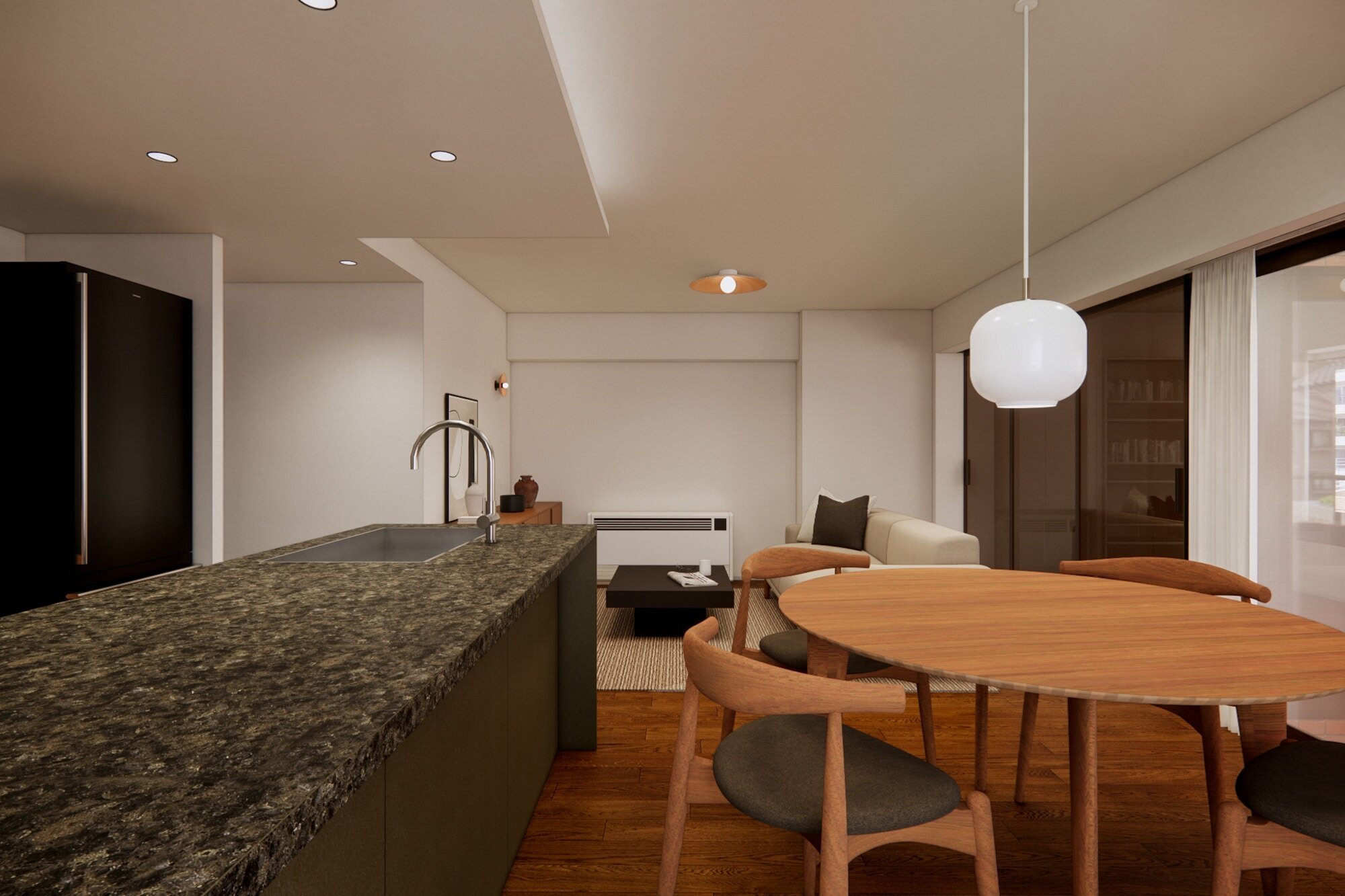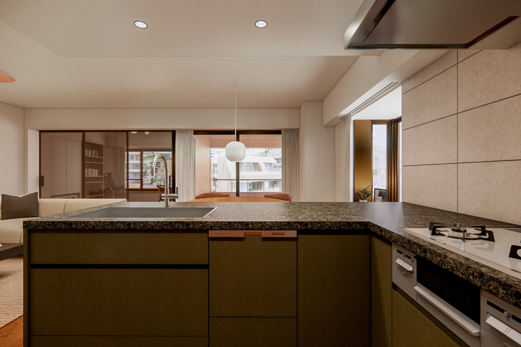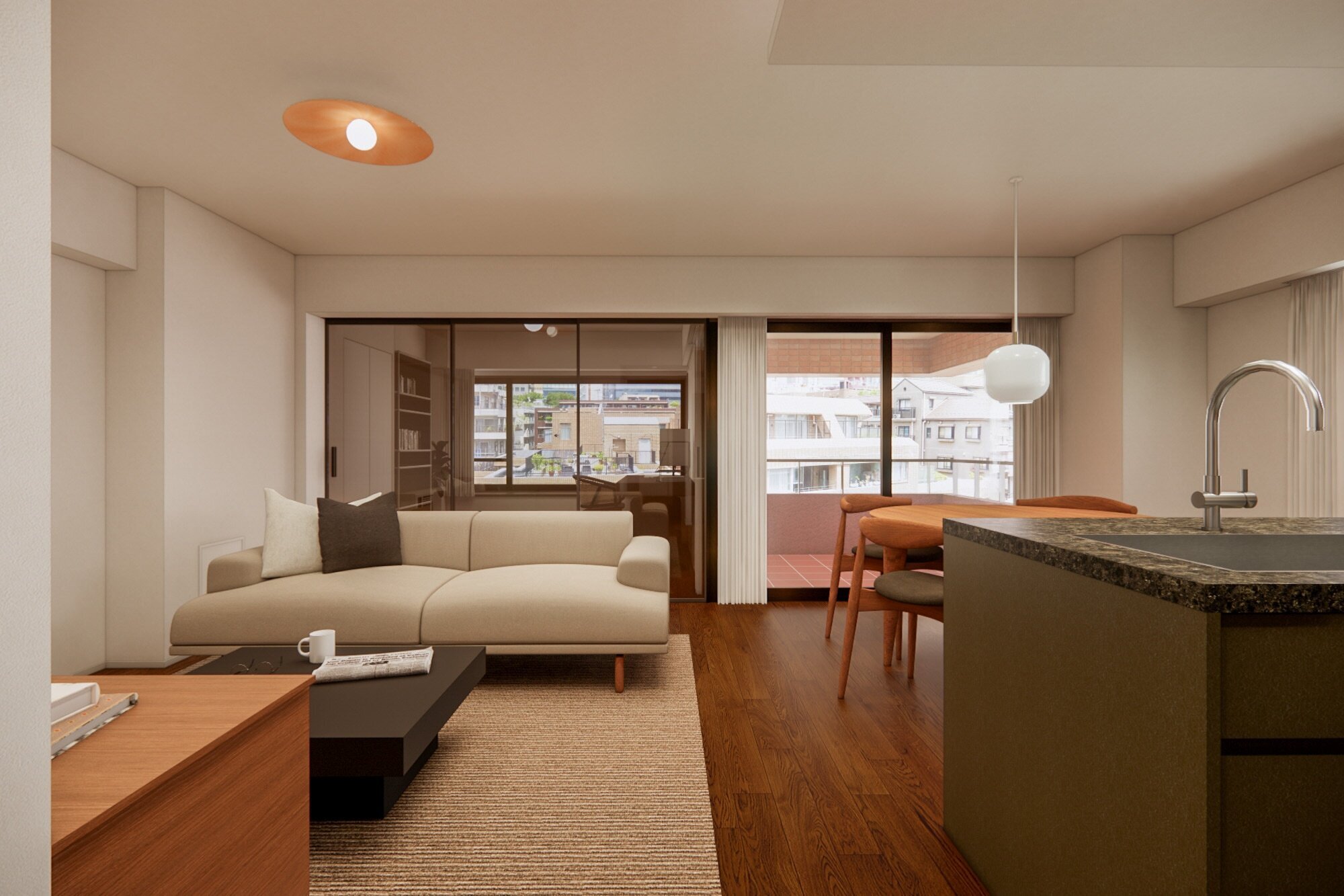 都心の利便性と、穏やかな暮らし心地が調和する “参宮橋エリア”。ヴィンテージの風格に、木の質感とやわらかな灯りを添えて。家族の時間と感性を豊かに育む、上質な静けさに包まれた住まいです。