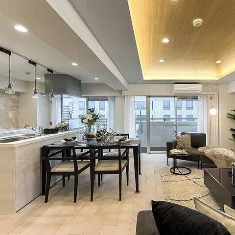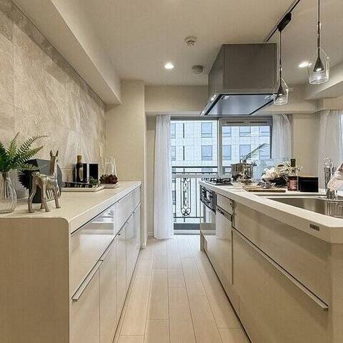 恵比寿と広尾の間、明治通り沿いに建つビッグコミュニティ。春には、いつもの帰り道が桜並木に。その先に待つのは、約85㎡のゆとりある3LDK角住戸。アイランドキッチンやツーボウル洗面など、水まわりのゆとりも魅力です。
