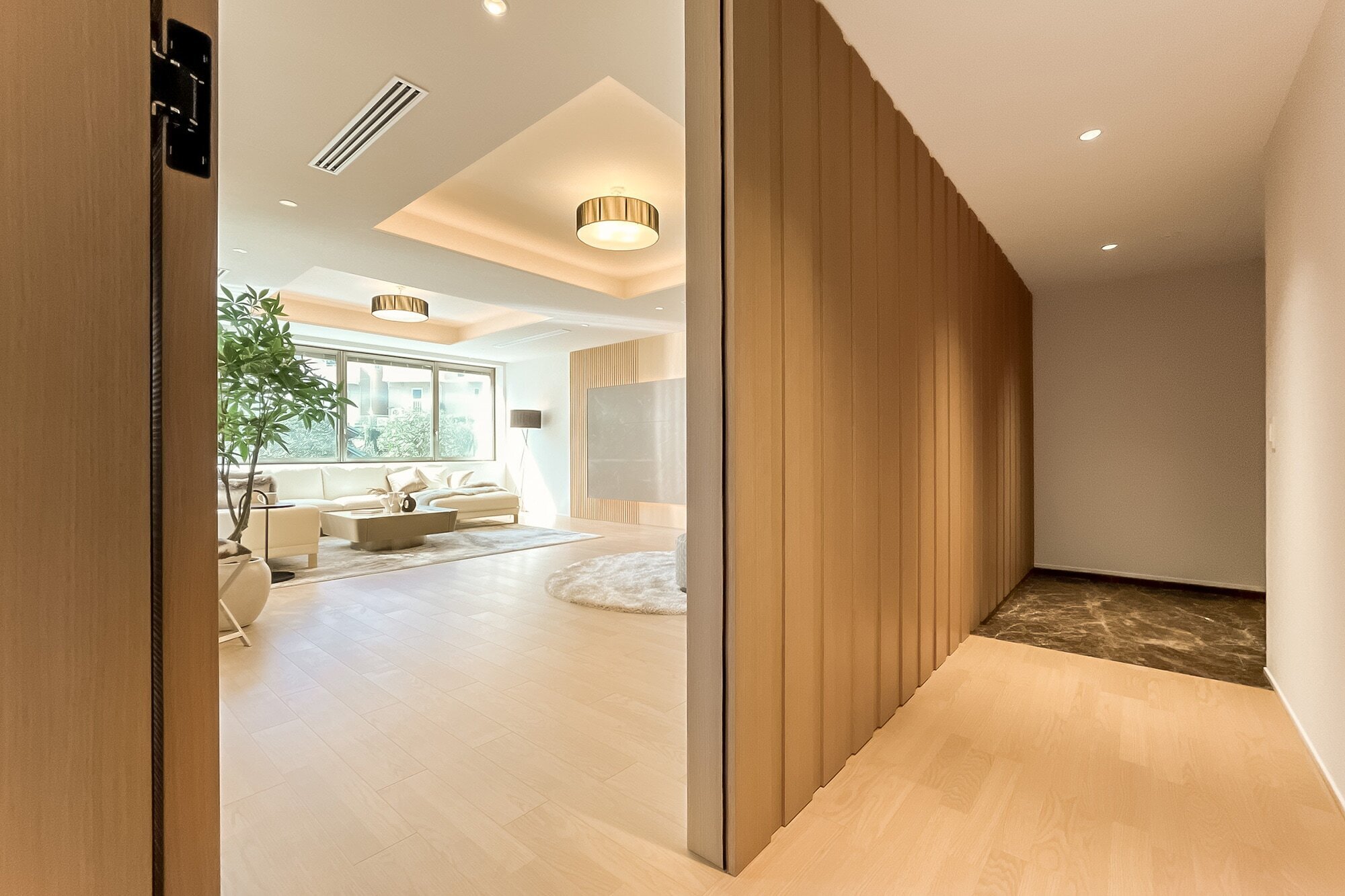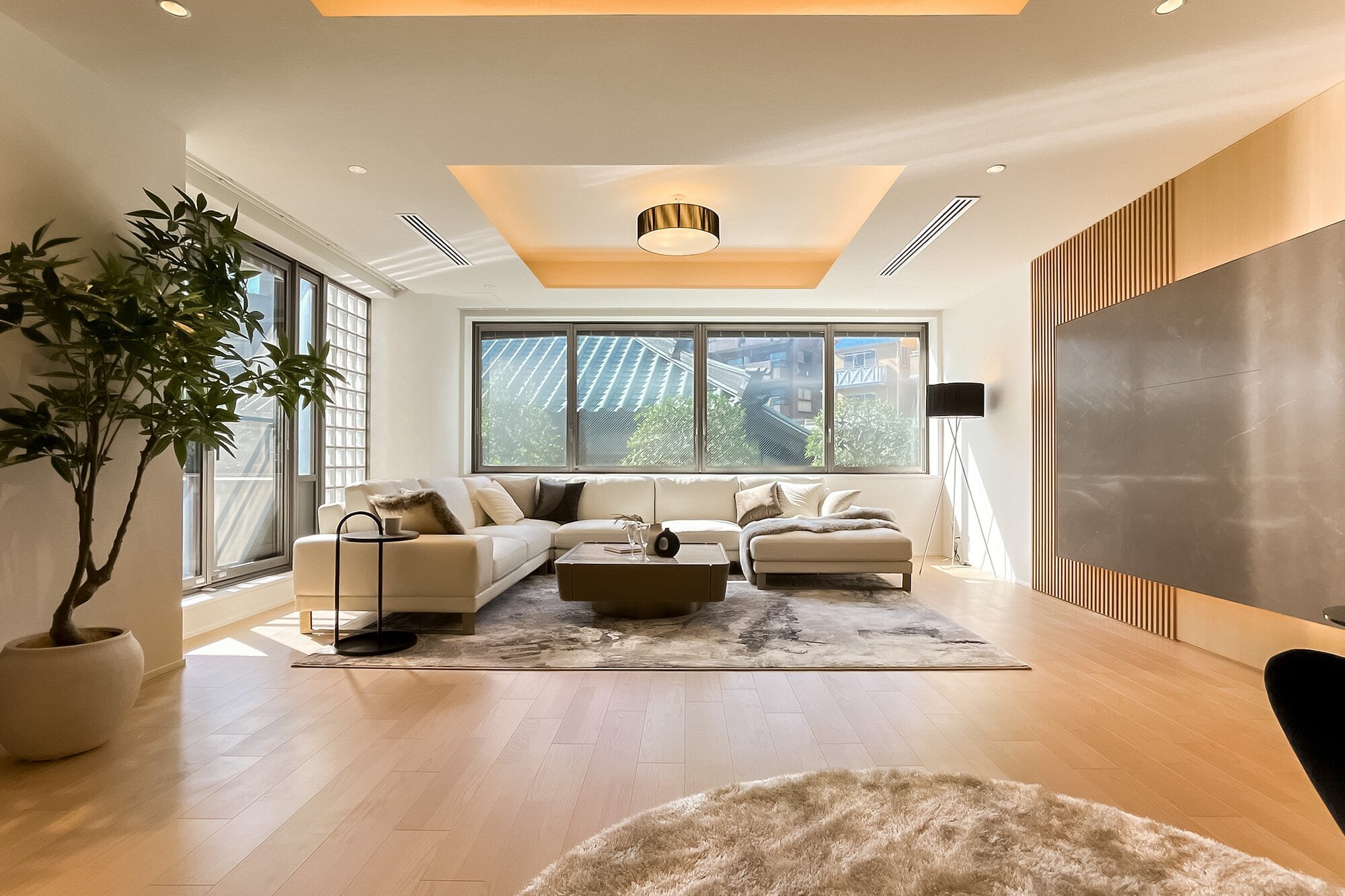 都内有数の邸宅街として知られる “港区白金” が舞台。植栽に囲まれ、弧を描く外観はまるで美術館のよう。約176㎡のゆとりを備えた2LDKの住まいは、どの窓からも緑を望む、まさに邸宅の名にふさわしい空間です。