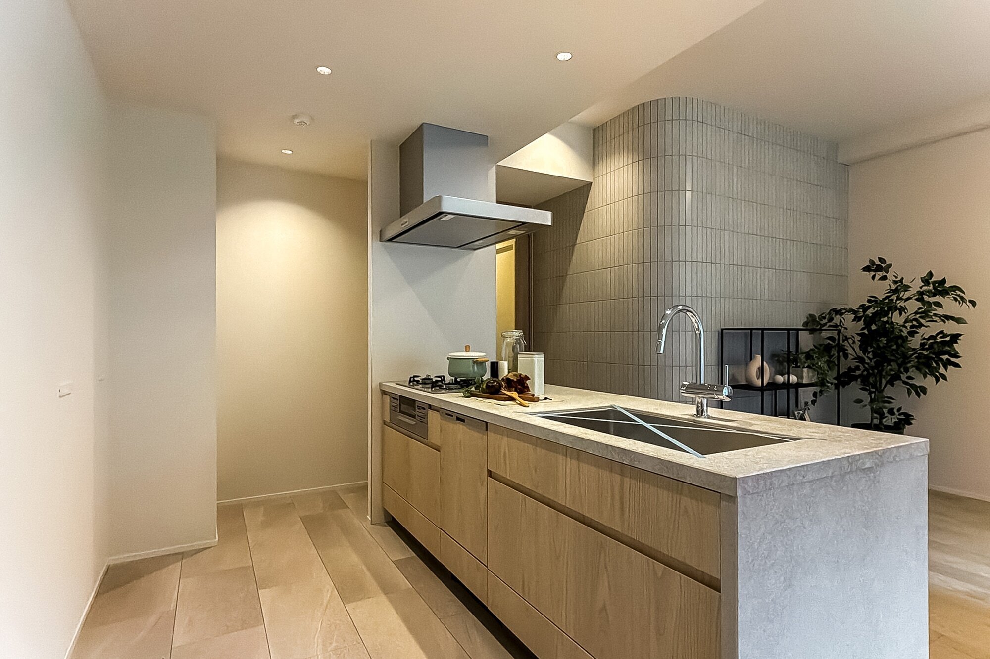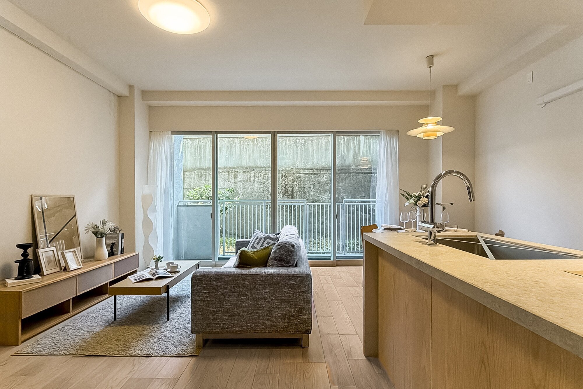 都会の喧騒を忘れる赤坂の丘の上、重厚なヴィンテージマンションの一室。やわらかな空気の中に浮かぶのは、白とオークが織りなす曲線美。日々の忙しさを整え、感性を育む住まいを、カウカモがプロデュースしました。