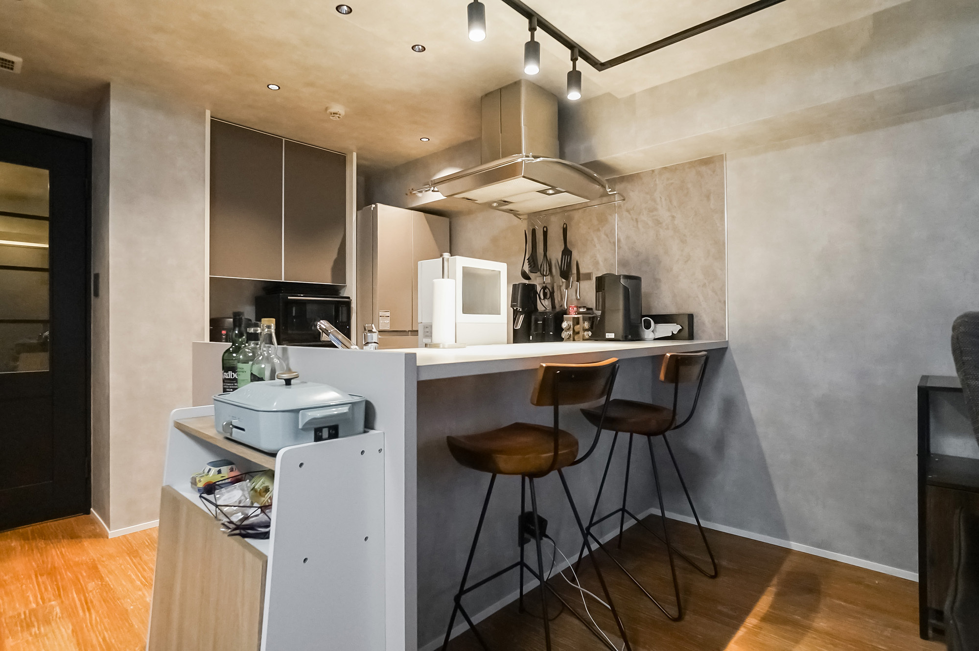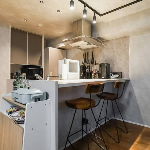 都立大学にある、大切な愛犬・愛猫と籠もるためのシックな1LDK。モノトーンで統一された内装に、お気に入りの照明で雰囲気づくりをしたら、ムーディーな隠れ家の完成です。自然と美食の街で、相棒との濃密で心地よい暮らしが始まります。