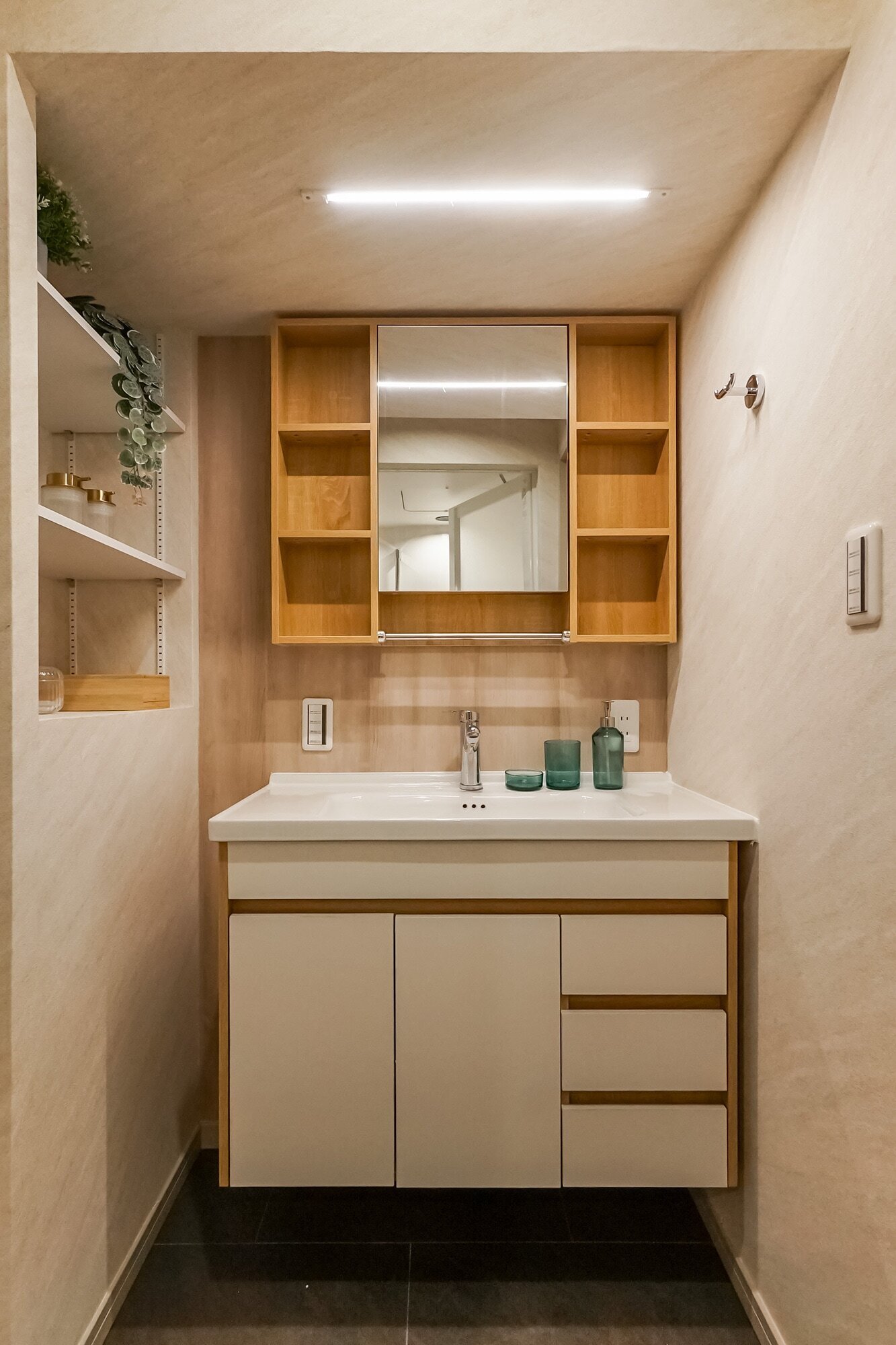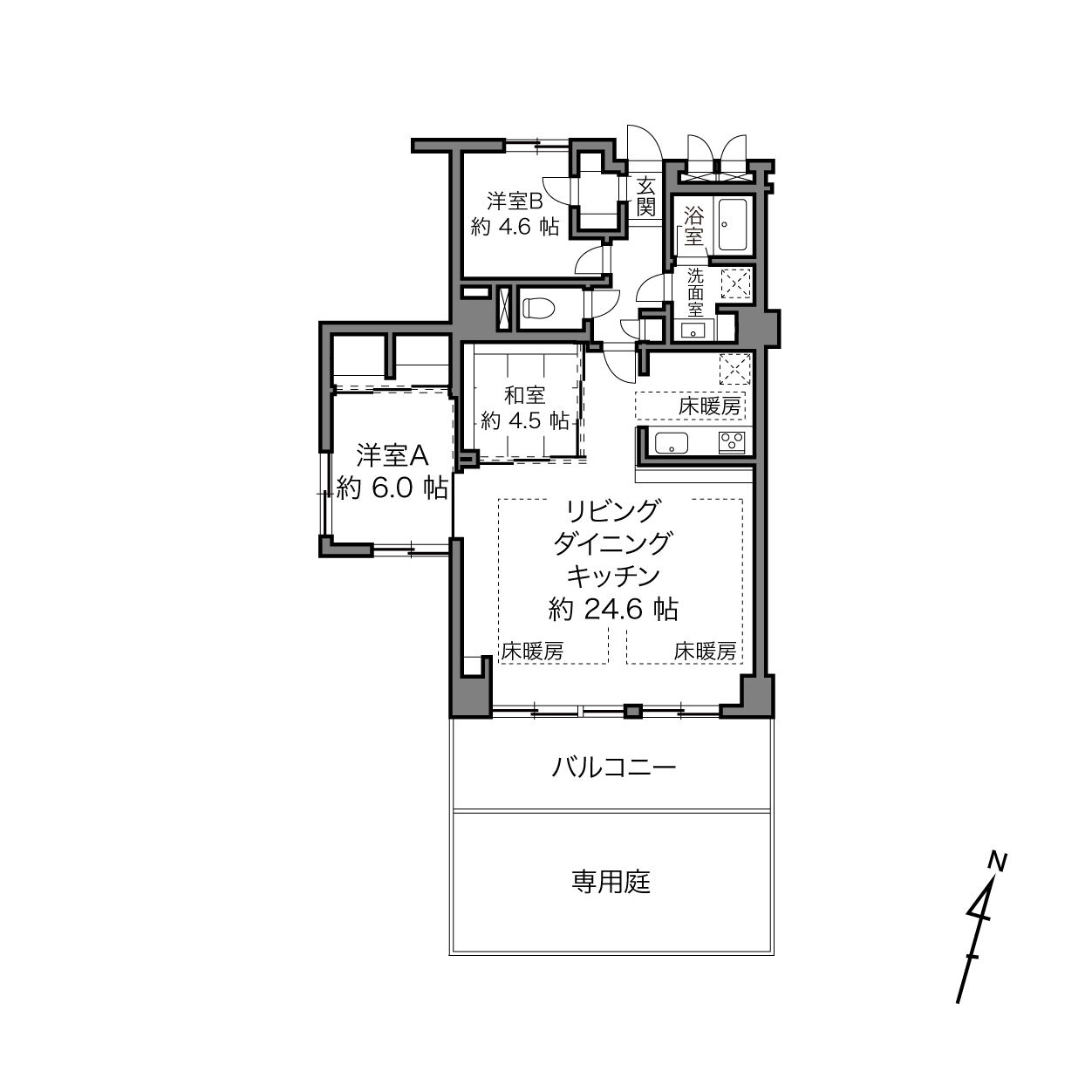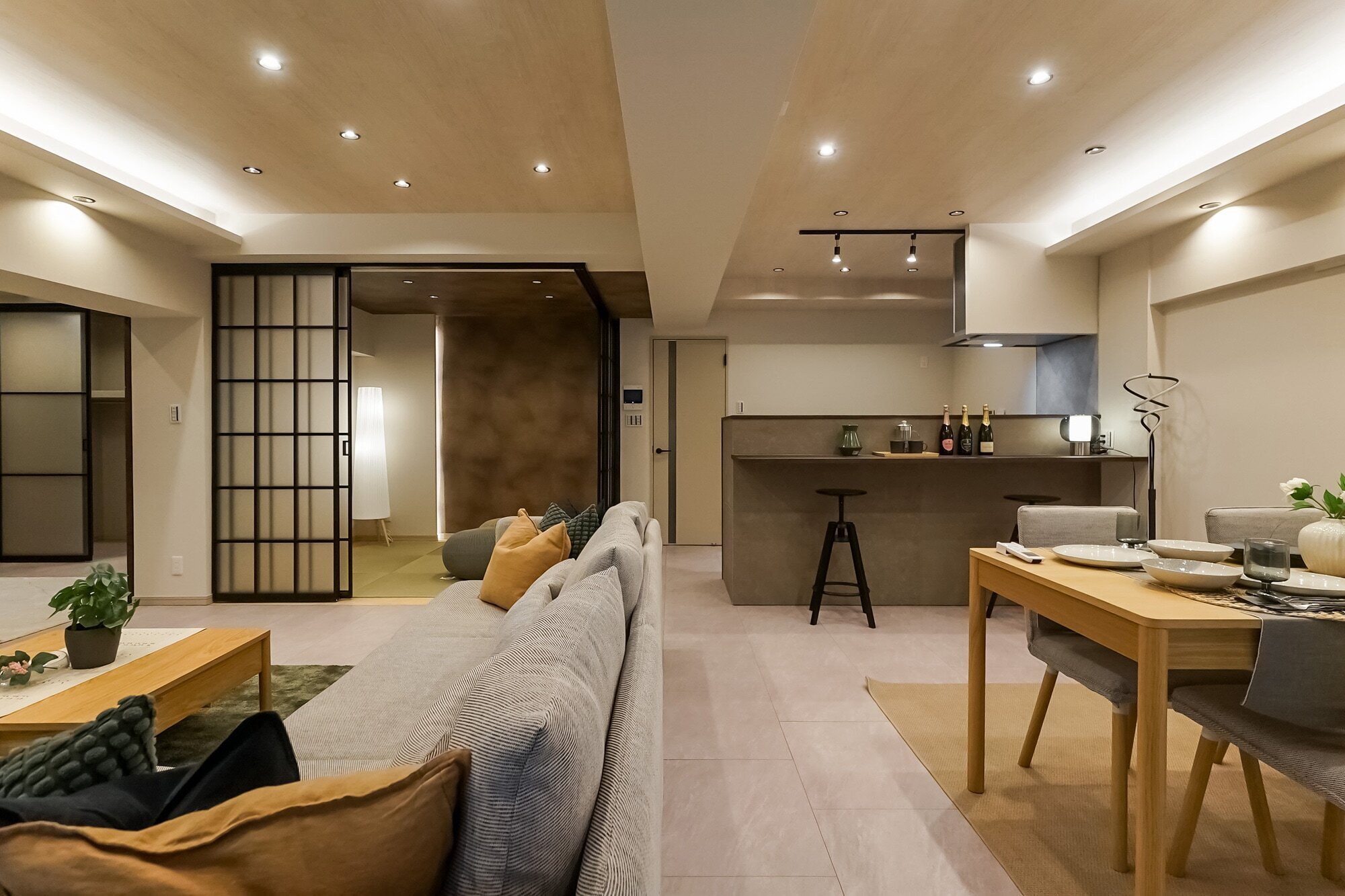 専用庭に出てひと息。和室に籠ってまったり。キッチンカウンターでしっぽり。ゆとりある空間の中に散りばめられた、いくつもの居場所。気分に合わせて、点々と過ごし方を変えてみる。暮らしを楽しむってきっとこういうこと。
