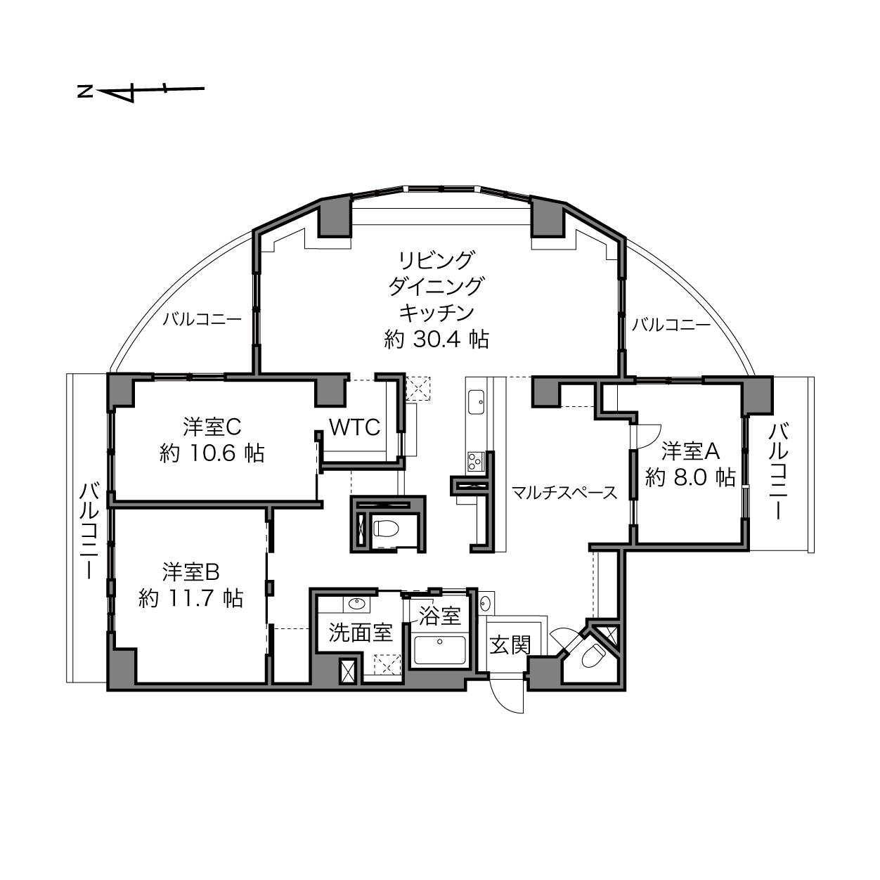 丘の上に佇む、半円を描くような専有面積約163㎡の住戸は、街を見下ろす開放感と三面採光の明るさが魅力。無垢材の温もりに包まれる回遊性のある住まいで、本当の豊かさとは何かを考えよう。時間をかけて、理想を重ねていける一邸です。