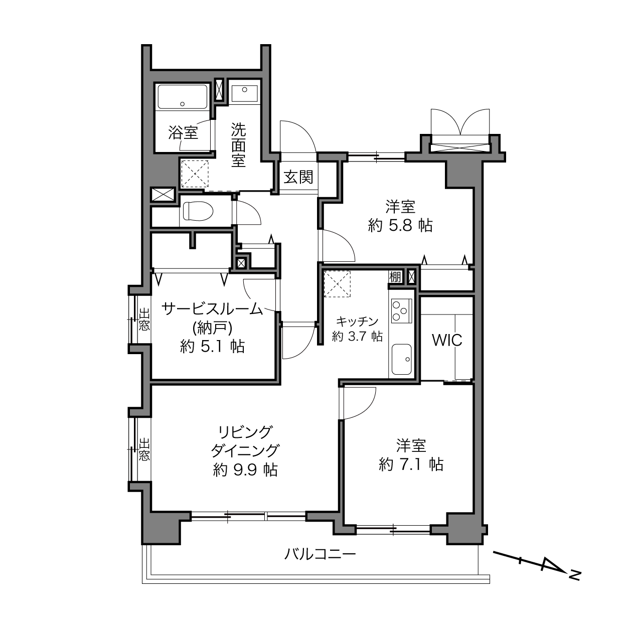74.32㎡ 2LDK+1S[サービスルーム(納戸)]