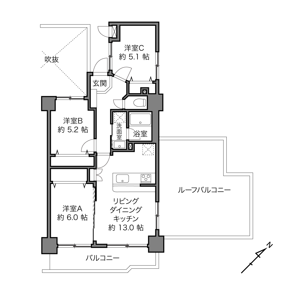 なんて駆け引き上手な物件だ。都内で約66㎡の3LDK、うーんなかなか手が出ない。ルーフバルコニー付きなんて夢のまた夢。駅距離……ならば妥協できるか? こちらの心を見透かすように、突如現れたこの物件。平成築で苦しゅうない。よし、まずは家族会議の開催だ。