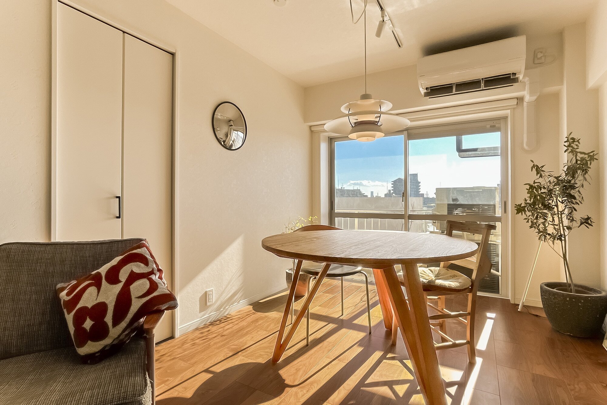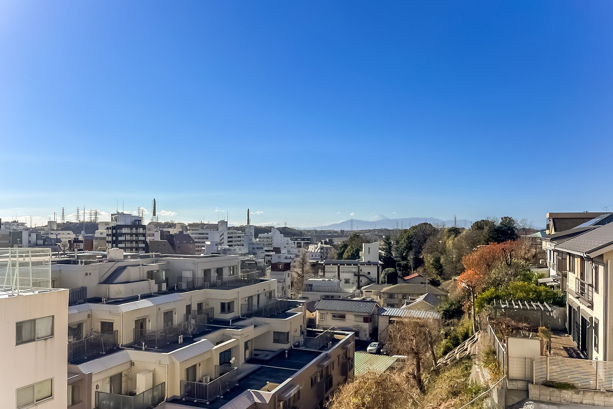 窓いっぱいに広がる空。南西・北東の両面採光が運ぶやさしい光。ペットも一緒に穏やかな時間を重ねていける。「綱島」駅徒歩2分の利便性と、公園や富士山ビューの開放感を同時に楽しめる、光に包まれた住まいです。