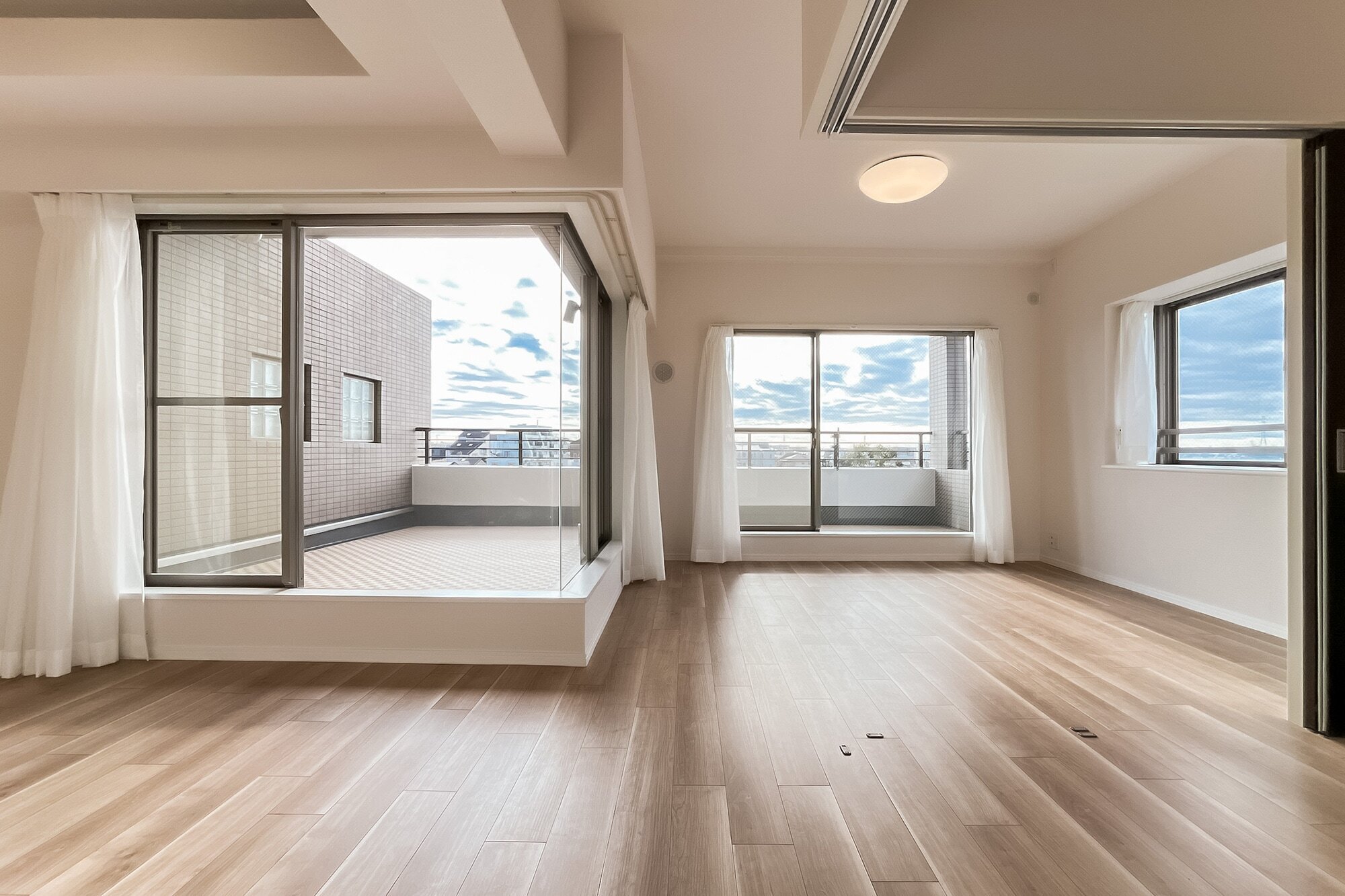 高台の広いテラスから、LDKのいくつもの窓から、いまにも空に手が届きそう。3方角住戸で眺望も日当たりも風通しも良好。自宅でたっぷり深呼吸したら、車に乗って街へドライブ。家族みんな気分は晴々、幸先もきっと上々だ。