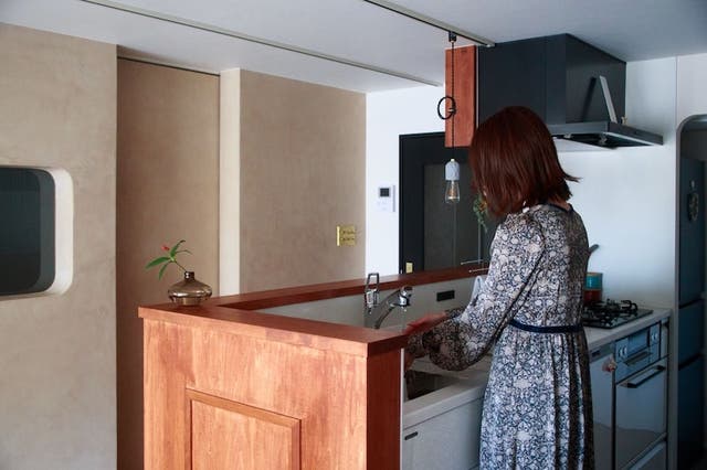 さらに、システムキッチンの腰壁を書斎のデザインに合わせたり、寝室の壁を洞窟のように仕上げるなど、細部までこだわりが詰まったリノベーションが魅力です。