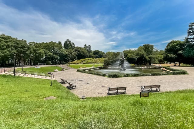 三軒茶屋栄通りを抜けて住宅街を少し歩くと、「世田谷公園」に到着。広大な敷地には芝生広場や噴水、ミニSL(蒸気機関車)、プレーパークまで備わり、子どもも大人も楽しめる多目的な公園です。