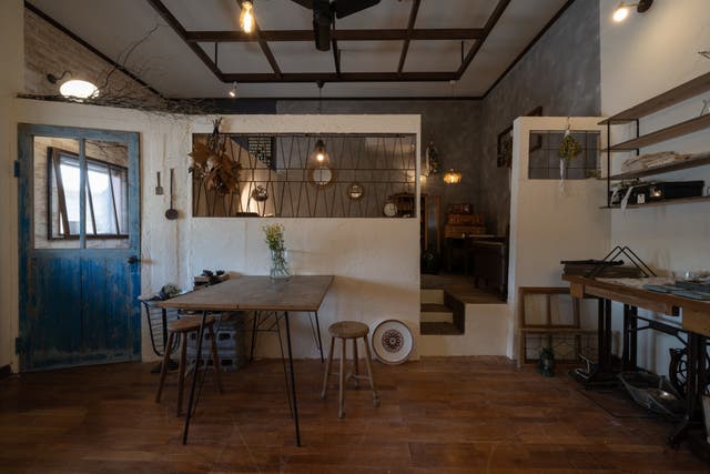 お部屋づくりでは、ユーズド家具やエイジング加工されたアイテムを取り入れ、落ち着いたダークトーンをベースにすると、レトロな喫茶店のような落ち着きのある空間に仕上がります。