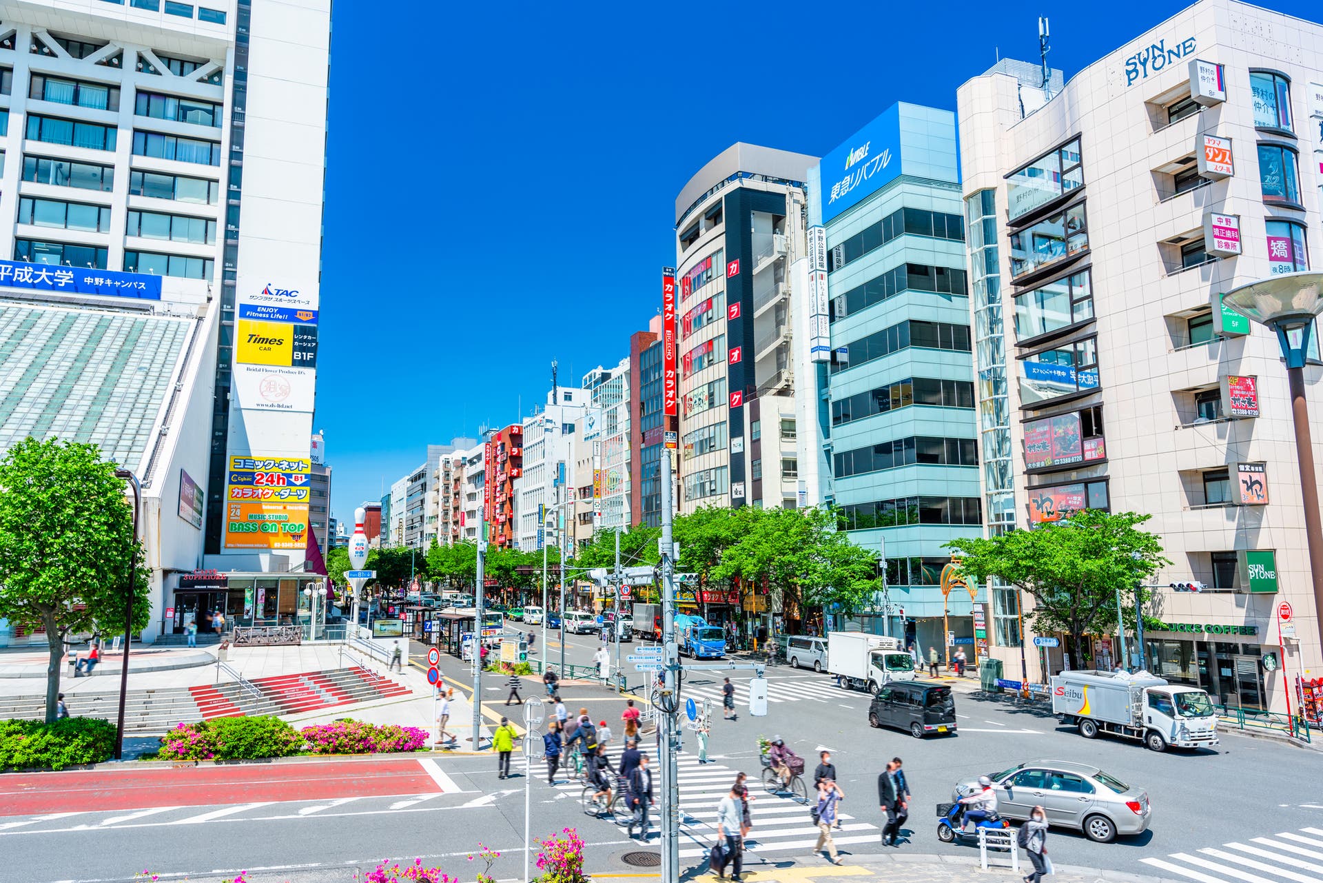 JR中央線や東京メトロ東西線が乗り入れる中野駅は、その利便性から住宅はもちろん、近年ではオフィスビルや商業施設も増加しています。さらに、大学や病院、公園、ホテルなどさまざまな都市機能の需要も高まっています。