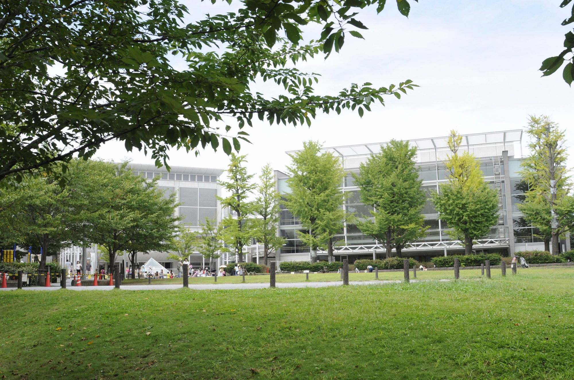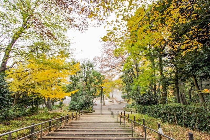 柿の木坂通り沿いにある、図書館や体育館、公園がまとまった「めぐろ区民キャンパス」へ。広場のベンチで、街の空気をゆっくり味わえます。
