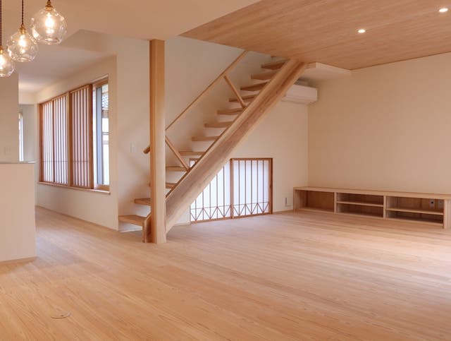 凹凸を抑えた直線的な構成はスタイリッシュな印象を与えます。家具や建具も直線的なものを揃え、配置も整列させると効果的です。
