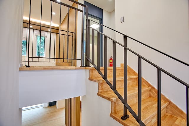 たとえば、無垢材の階段手すりにアイアン素材を組み合わせると、自然素材と無機質な素材が調和し、洗練された印象を演出できます。この組み合わせは、シェルフやラックなどの収納家具に取り入れるのもおすすめです。