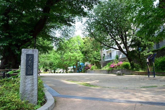 方南公園は、東京メトロ丸ノ内線「方南町駅」から徒歩約5分の場所にあります。善福寺川南側の高台下と北斜面に展開する、上下2段の広場を持つ公園です。園内には、健康遊具のハングバーが設置されており、懸垂やハンギングレッグレイズなどの筋力トレーニングをすることができます。