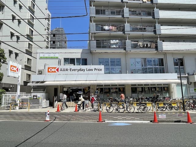 駅から南へ徒歩約7分のオーケー平野店は、リーズナブルな価格設定で人気のスーパーです。店舗上階にはクリニックもあり、日常の利便性が高い立地です。