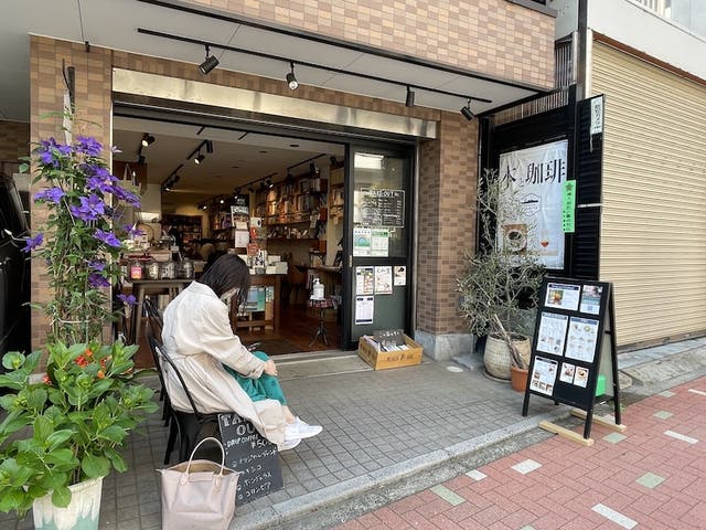 古書と新刊を揃えるドレッドノートでは、ハンドドリップコーヒーや自家製スイーツ、ホットサンドを提供しています。店主が選んだ本を手に取りながら、落ち着いた空間でゆっくりと過ごせます。