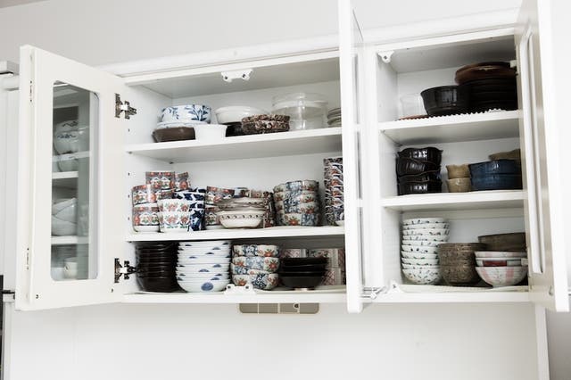 収納は壁面や吊り戸棚を活用