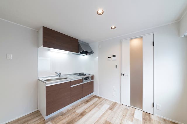 | 壁付キッチン | 壁に向かって調理。リビング・ダイニングを広く使える | 1LDK、2LDK、コンパクトな間取り |