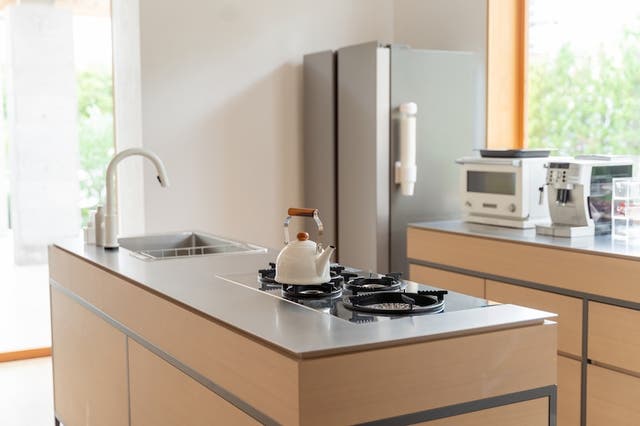 費用は、配管・配線の移設距離、床・天井の補修範囲、レンジフードやダクト経路、ガス⇄IH切替(200V回路新設など)、造作カウンター材のグレード、背面収納の有無といった条件で大きく変動します。アイランド型に変更する場合は通路確保やダクト延長の影響が出やすく、追加費用が発生しやすい点に留意してください。