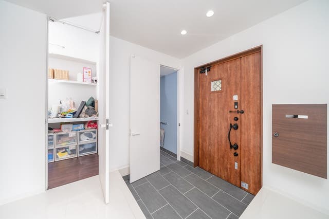 玄関横に設ける大きな収納スペースで、ウォークイン型(出入口が1箇所)とウォークスルー型(玄関から室内へ抜けられる動線型)の2種類があります。