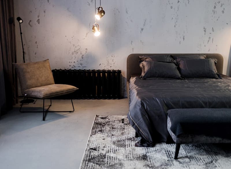 暗色を多用すると重たく見えやすくなります。壁・ラグ・カーテンなど面積の大きい要素に中明度のグレーやベージュを足し、クッションやアートで彩度控えめのアクセントを一点加えると、抜け感と統一感を両立しやすくなります。