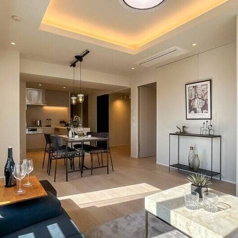 - ご紹介するのは、9階に所在する3方角住戸です。プライベート性の高い住戸位置が◎ バルコニーからは遠くに「有栖川宮記念公園」のグリーンと、その先に鎮座する「東京タワー」を望みます♡