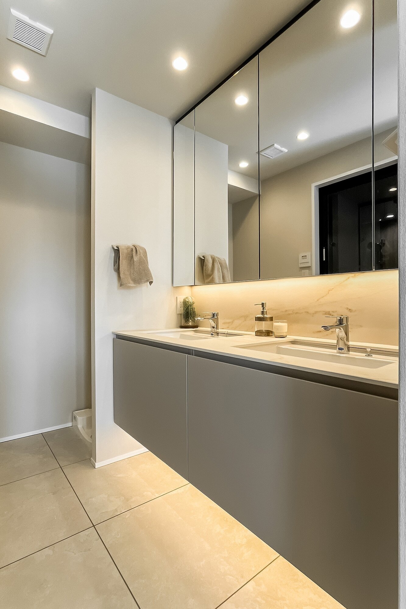 - LDKは約22.2帖と広々。約3.8帖の洋室はファミリークローゼットやワークスペースなど、プラスアルファの空間としてご利用いただくのもおすすめですよ。