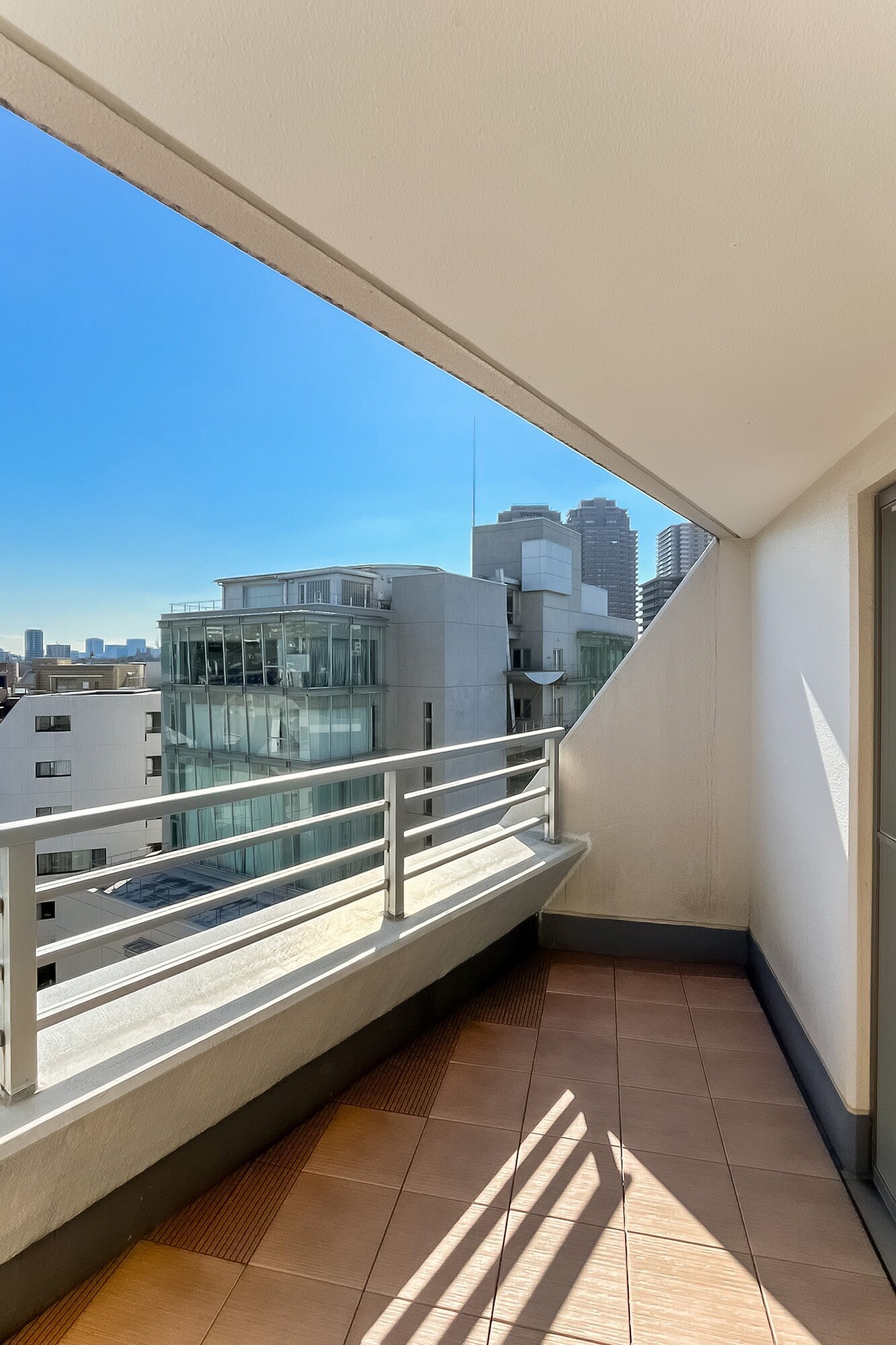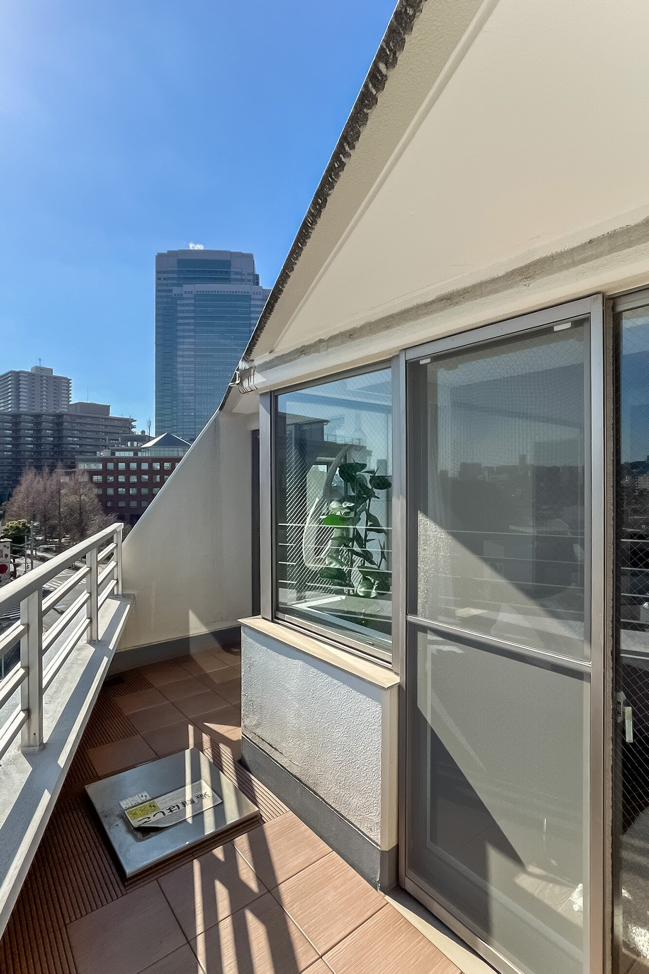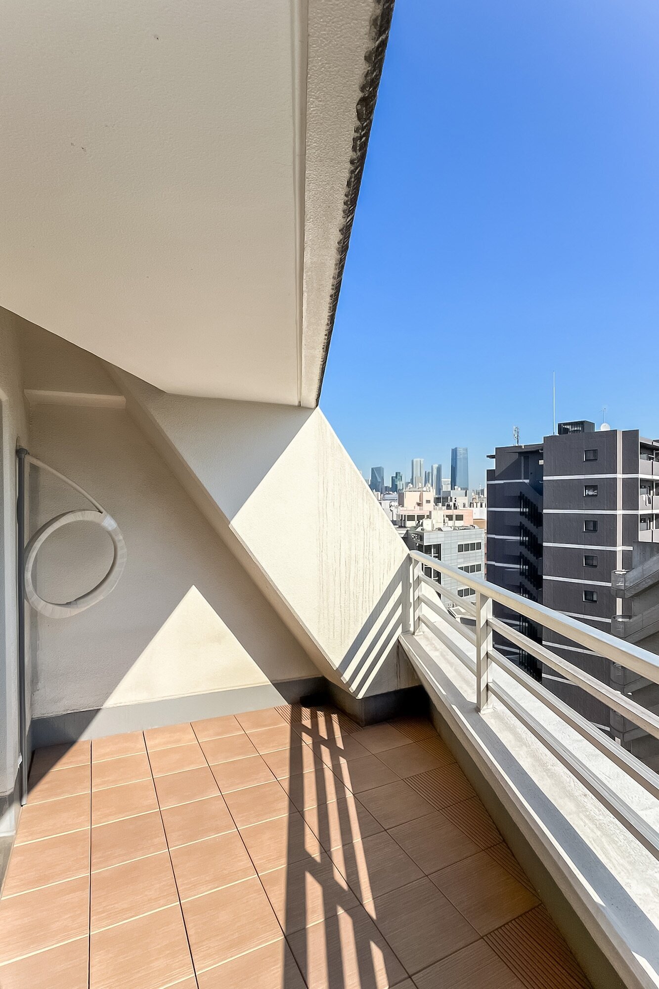 - ご紹介するのは、最上階9階に所在する4面角住戸。プライベート性の高い住戸位置が魅力です。ルーフバルコニーが備わり、空を広く仰げそうですよ◎