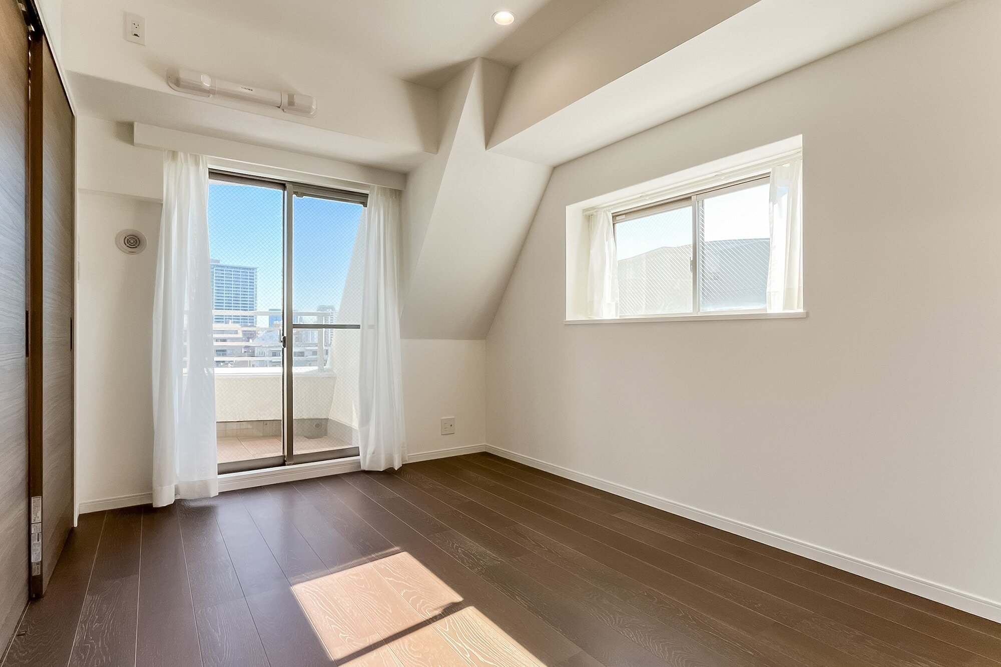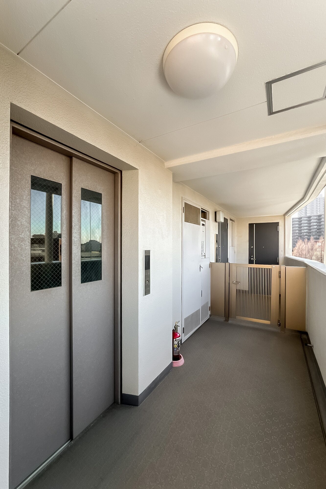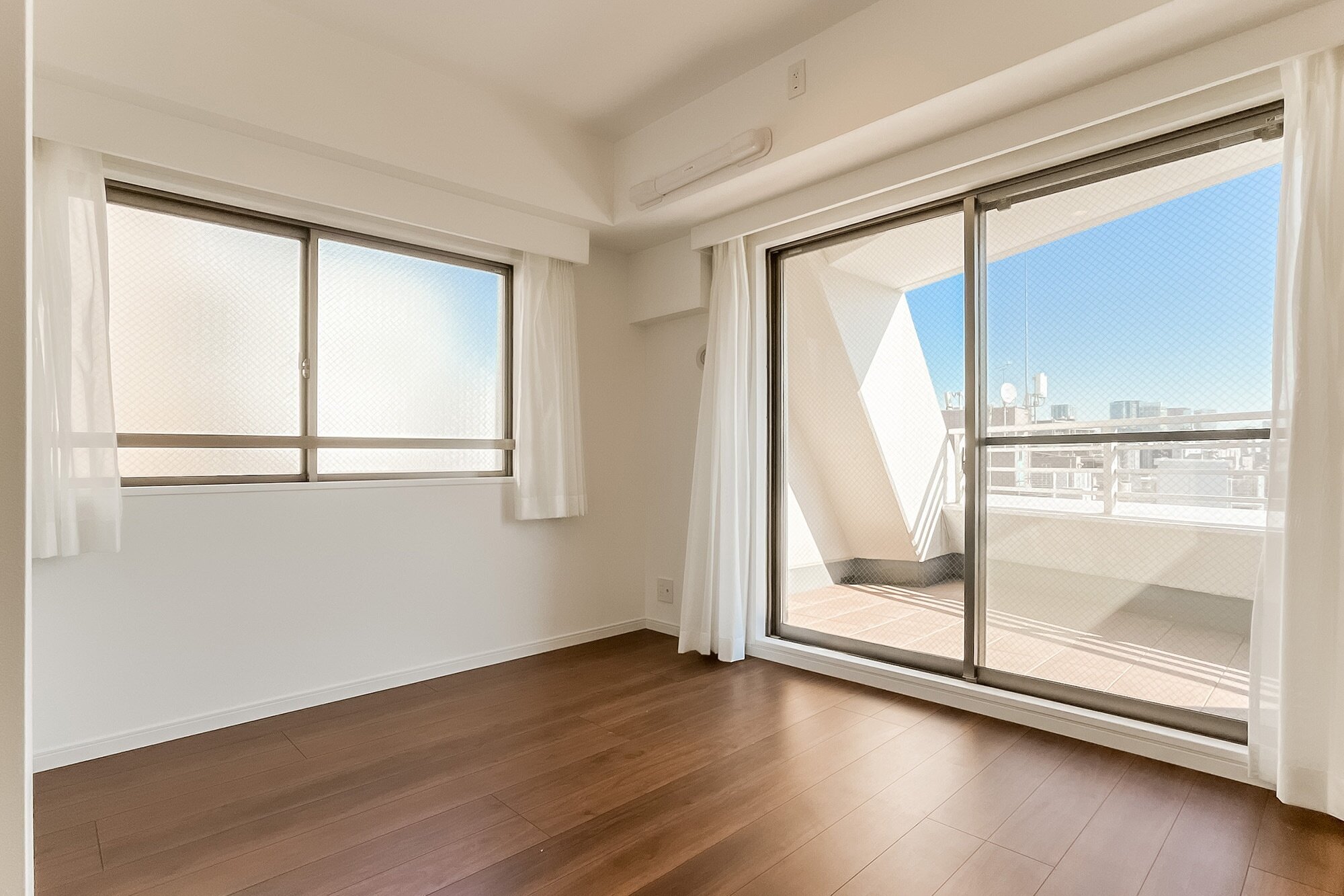- ご紹介するのは、最上階9階に所在する4面角住戸。プライベート性の高い住戸位置が魅力です。ルーフバルコニーが備わり、空を広く仰げそうですよ◎