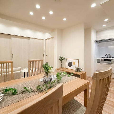 - ご紹介する住戸は8階に所在します。バルコニーからは空を広く仰げ、南西向きで日当たりもよさそうですよ。LDKは約10.3帖。約4.4帖の洋室の引き戸を開放して、光を引き込みつつスペースを拡張するのもおすすめです。
