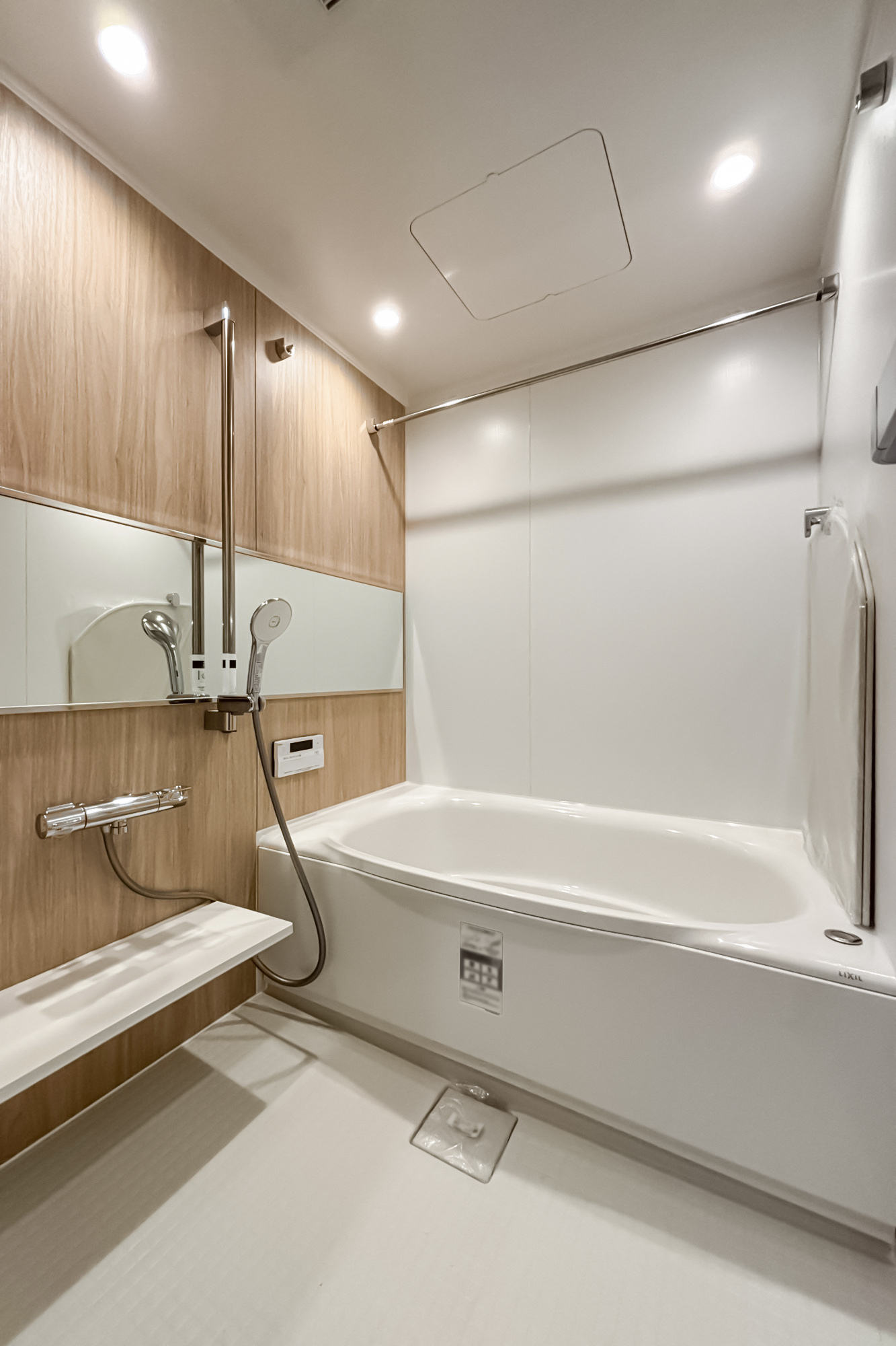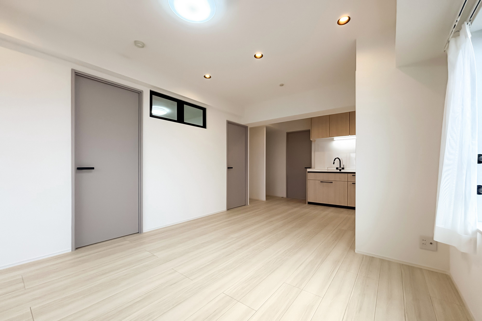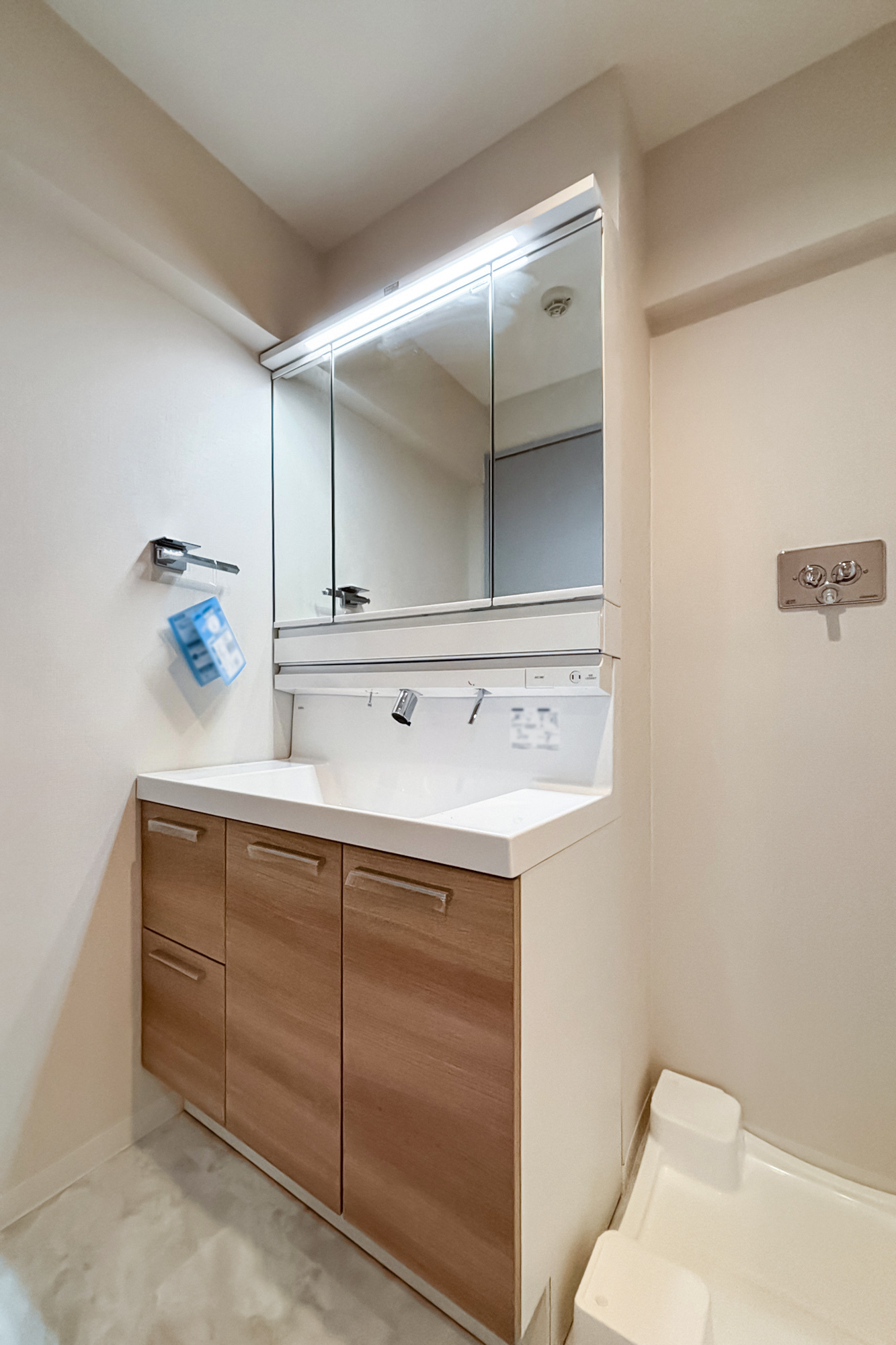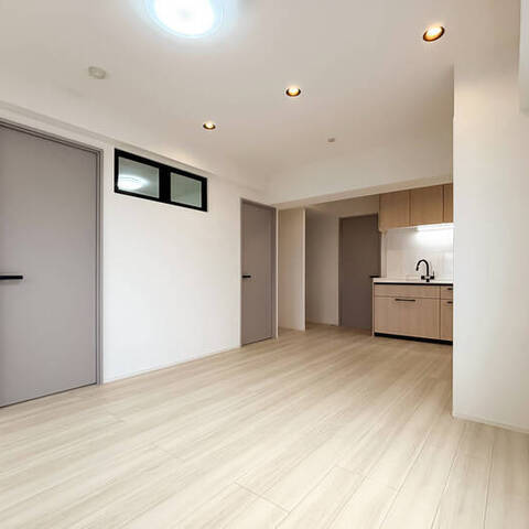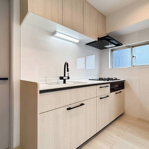 リノベーション内容:システムキッチン新規取付/給水・給湯管新規交換(専有部分)/給湯器新規取付(追焚付)/ユニットバス新規取付(1317サイズ)/浴室換気乾燥機新規取付/洗面化粧台新規取付/ウォシュレット一体型便器新規取付/フローリング新規貼替/壁、天井クロス新規貼替/各室建具新規取付 他