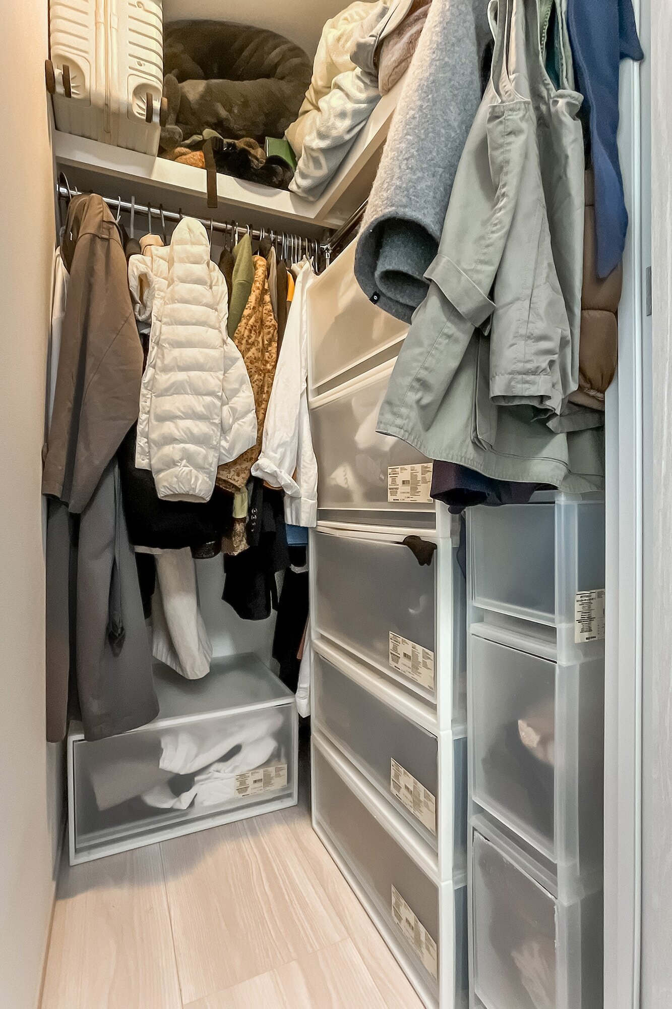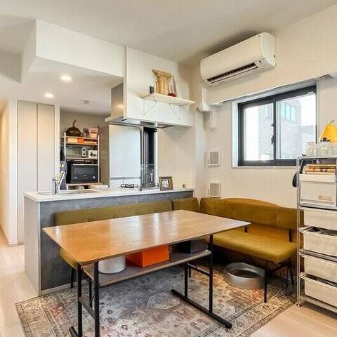- 専有面積約47㎡の2LDK。角洋室にはウォークインクローゼット(WIC)が備わっています。リビング横の4.3帖の洋室はウォールドアで仕切られているため、普段は開放してLDKの一部として使うこともできますよ。
