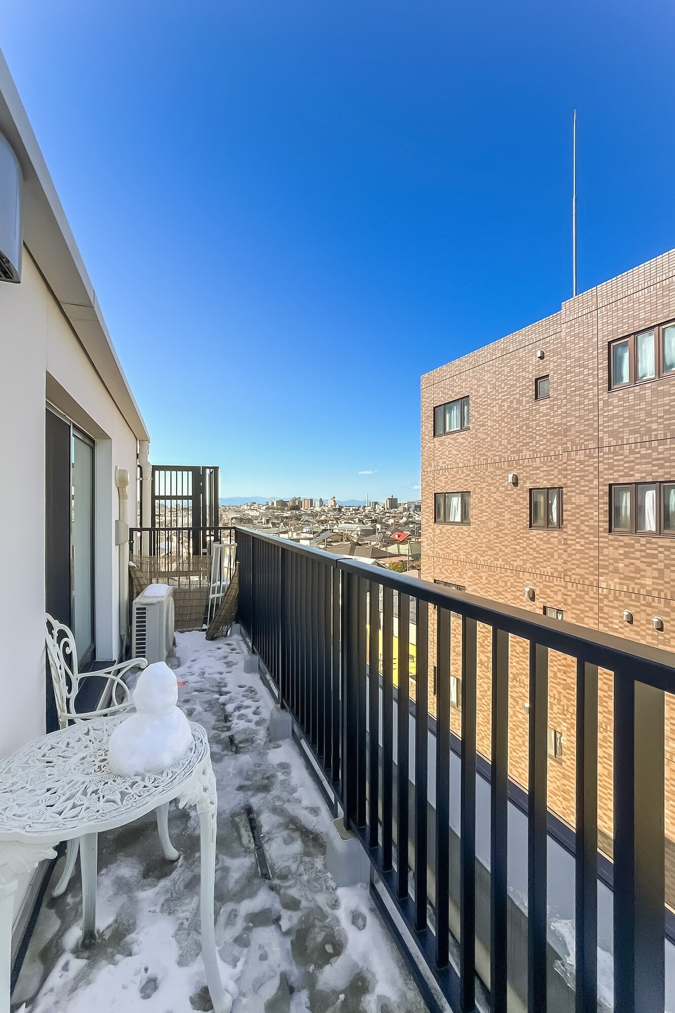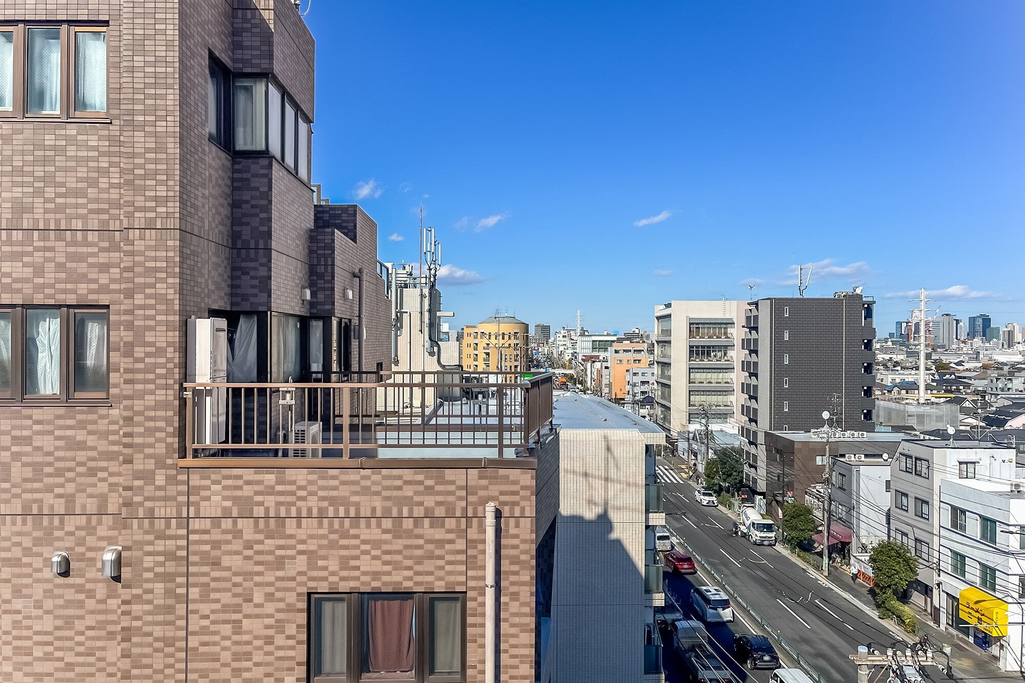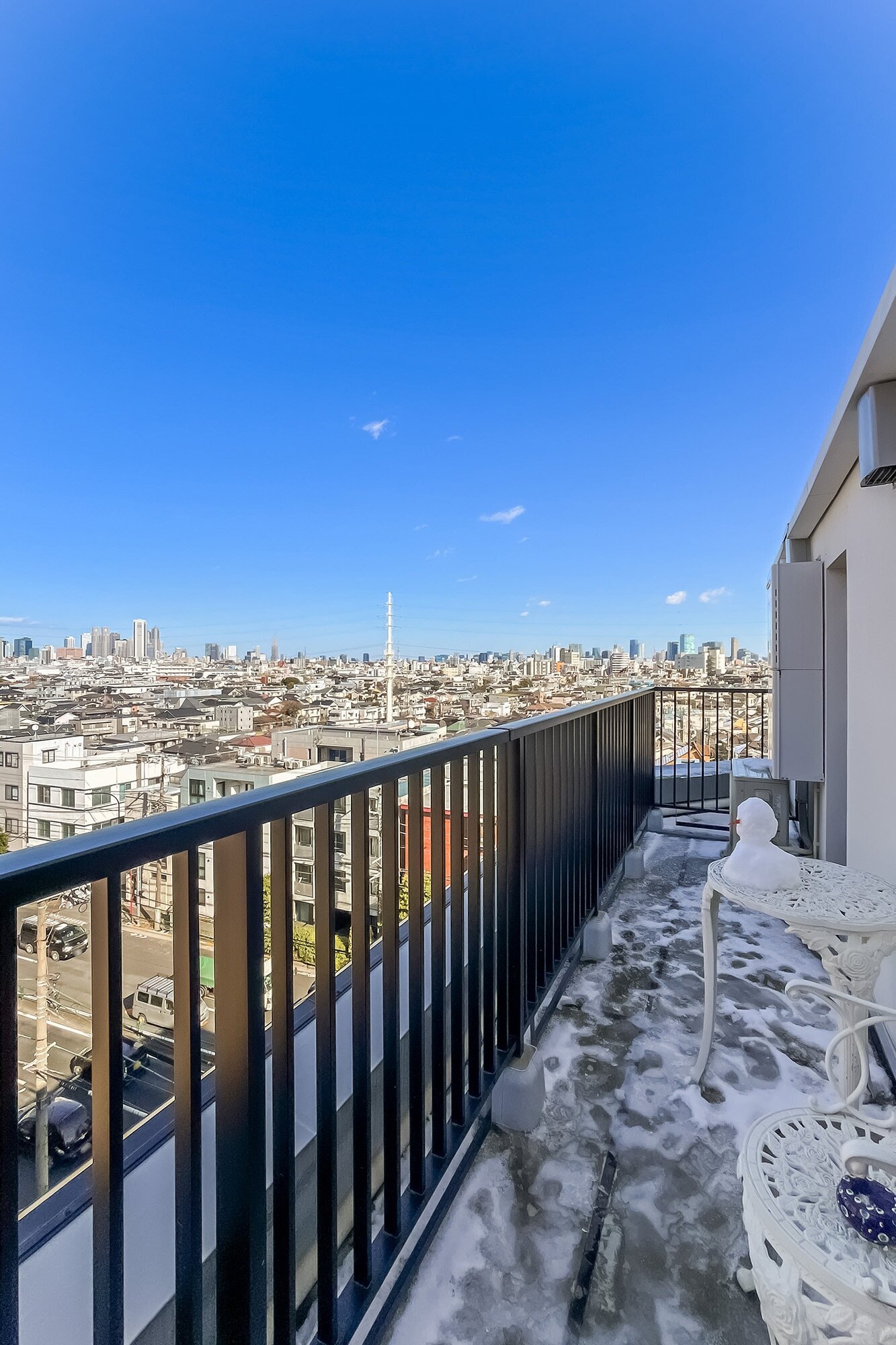 - 住戸は7階に所在。バルコニーからは「東京スカイツリー」を望むことができます。スコンと抜ける眺望が気持ちいい! ルーフバルコニーでは、売主さまのようにテーブルセットを置いてセカンドリビングとして利用するのも楽しそうですね。