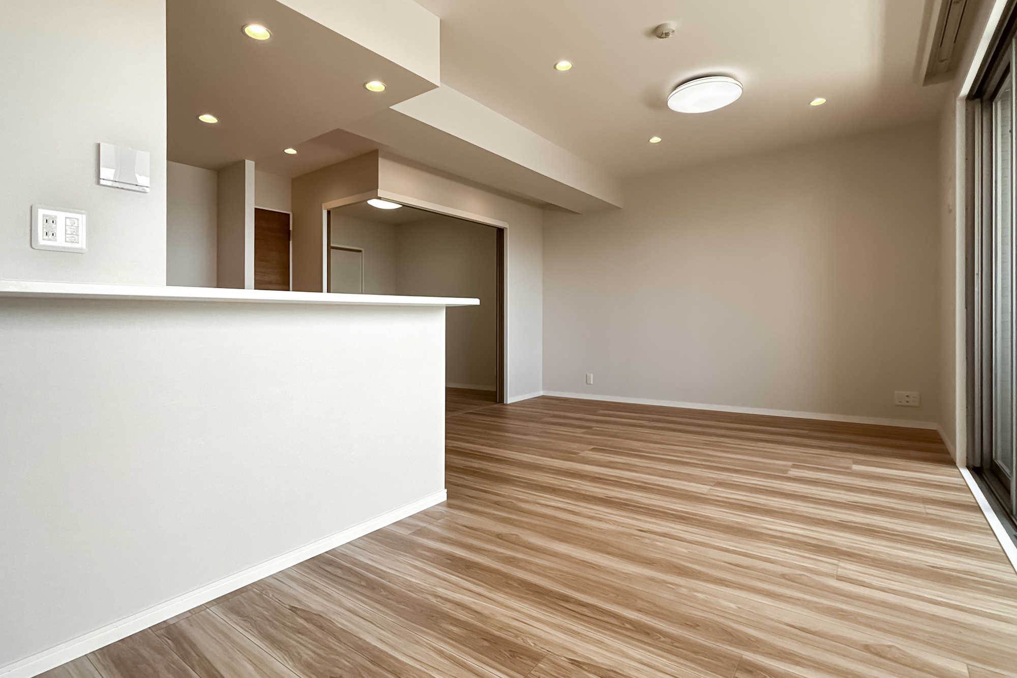 - 専有面積約72㎡を3LDKにした間取り。約16.6帖のLDKは横長で、窓が大きいのもうれしいですね。LDKに隣接した約4.6帖の洋室は、お子さまのプレイスペースやワークスペースとしてお使いいただくのもおすすめです。