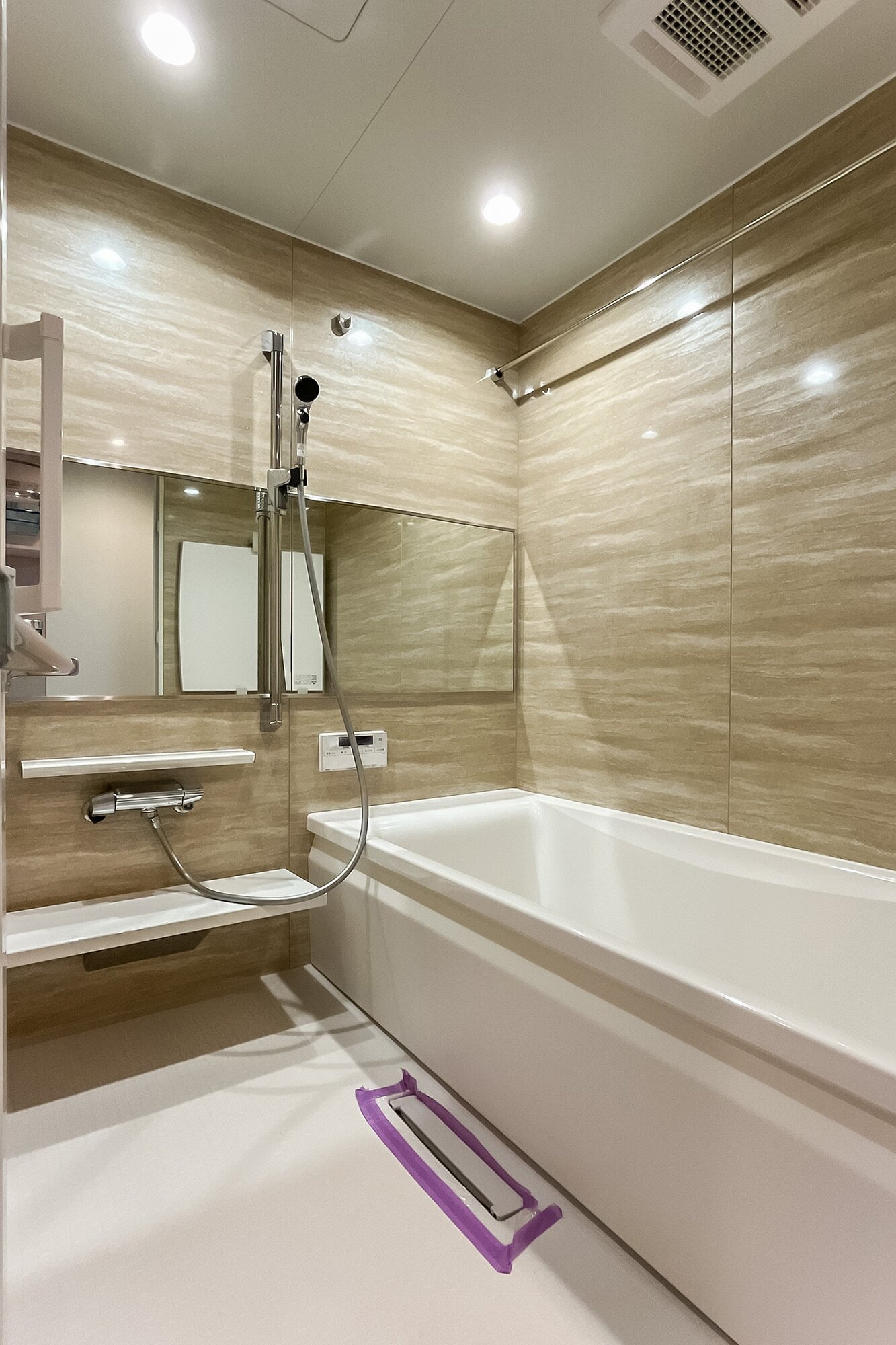 - 地下1階・1階・2階部分に所在する住戸。専有面積約91㎡を3LDKにした間取りで、マスターベッドルームは約7.3帖、お風呂は1616サイズとゆとりがあります。約17㎡のルーフテラス付きで、天気のよい日にはチェアを出してくつろいだり大空の下でヨガを行ったりと、さまざまな使い方ができそうです♪