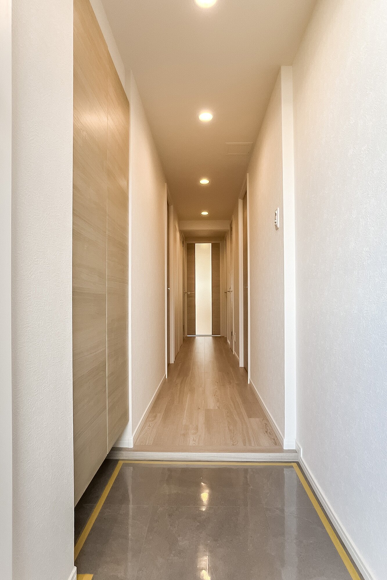 - 5階所在の角住戸。南向きで日当たりがよさそうですね。専有面積約78㎡を3LDKにした間取りで、LDKは約21.5帖と広々! 約5帖の洋室は、LDKと廊下のどちらからも出入りでき、フレキシブルに使えそうです。