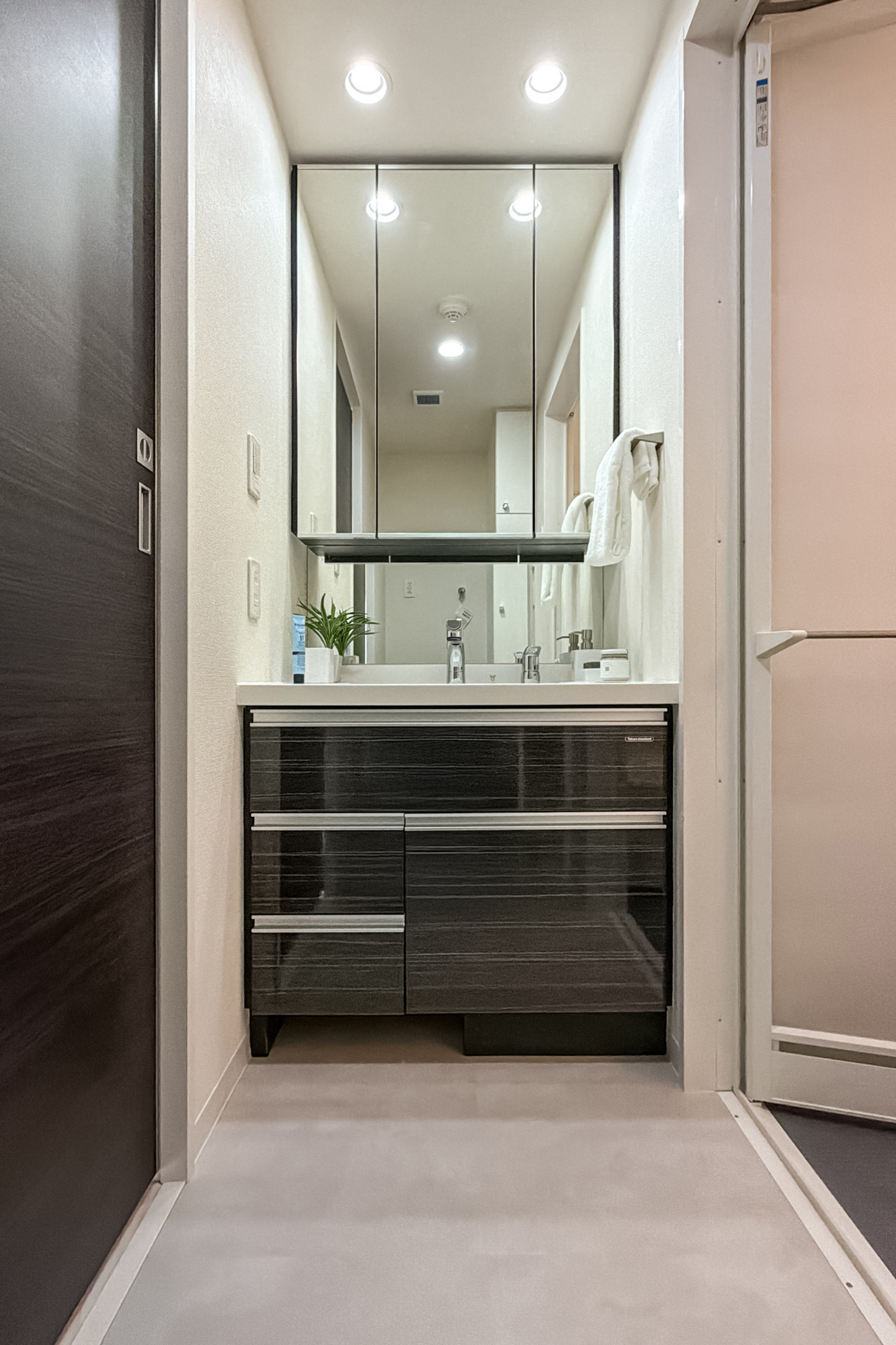 リノベーション内容:キッチン(3口ガスコンロ・浄水器内蔵シャワー水栓)/浴室(換気乾燥暖房機・サーモ付シャワー水栓)/トイレ(温水洗浄便座付トイレ)/洗面室(防水パン)/床 フロアタイル(洗面室、トイレ)/壁天井 クロス貼 他