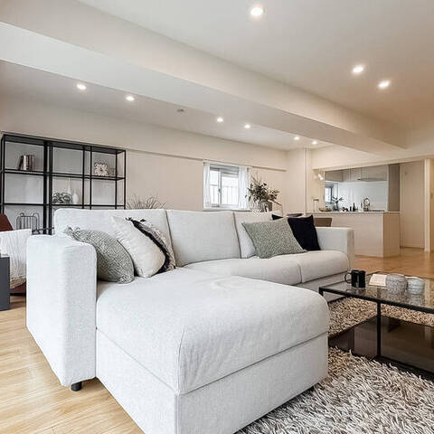 - 専有面積約104㎡を2LDKにした間取りで、LDKは約30.6帖と広々! 洋室2室も7帖以上とゆとりがありますよ。約2.6帖のDENはカウンター付きで、ワークスペースとして活用いただけそうですね。