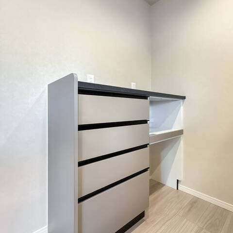 - 住戸は3階に所在します。LDKの一角にはカウンターが備わり、作業スペースとしてお使いいただけそう。洋室には大きめのウォークインクローゼット(WIC)があり、収納面も心強いですね。