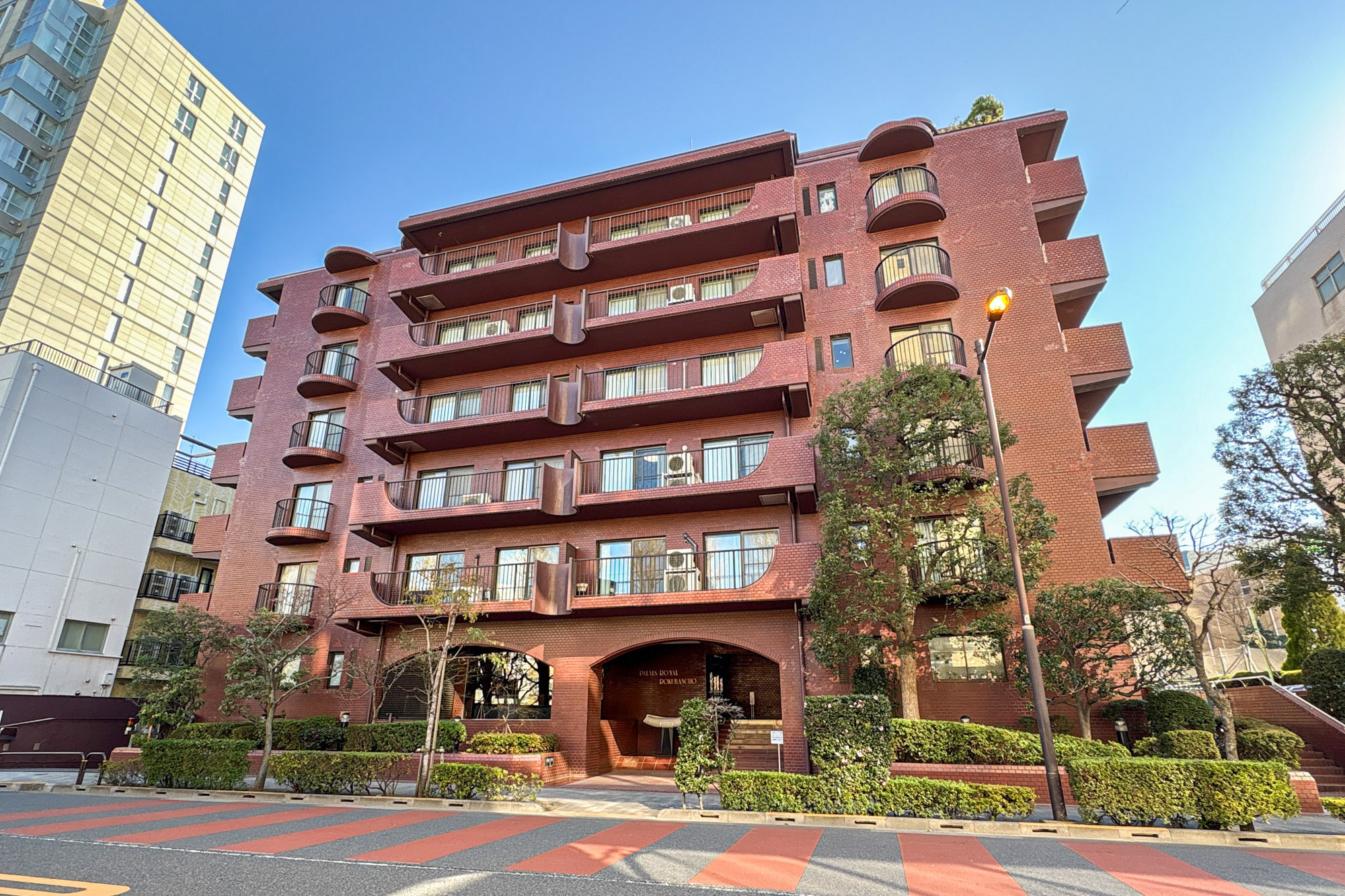 - 1978年築の建物で、総戸数は103戸と大規模。赤茶のレンガタイル貼りの外観やエントランスのアーチなど、ヴィンテージの風格たっぷりです。