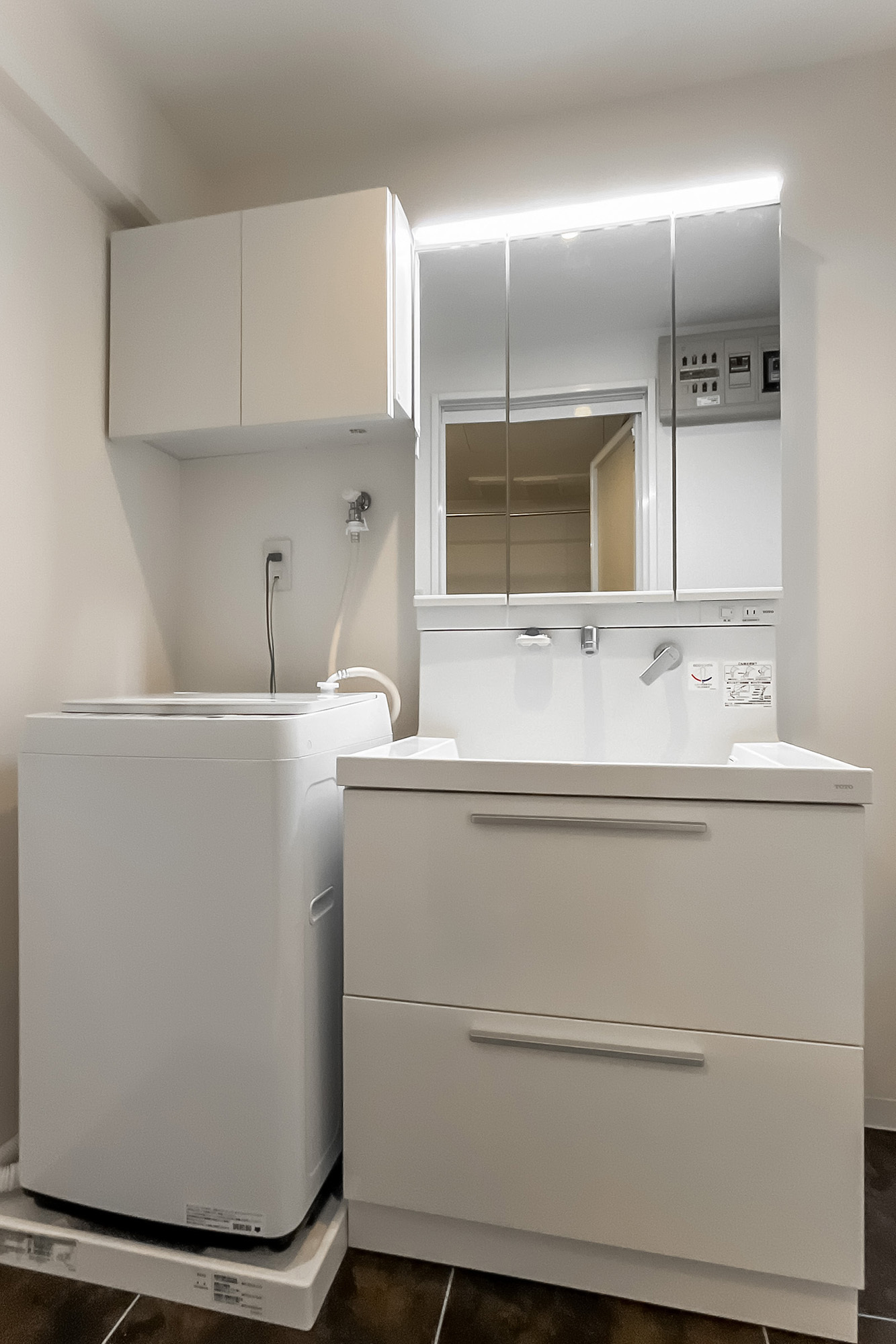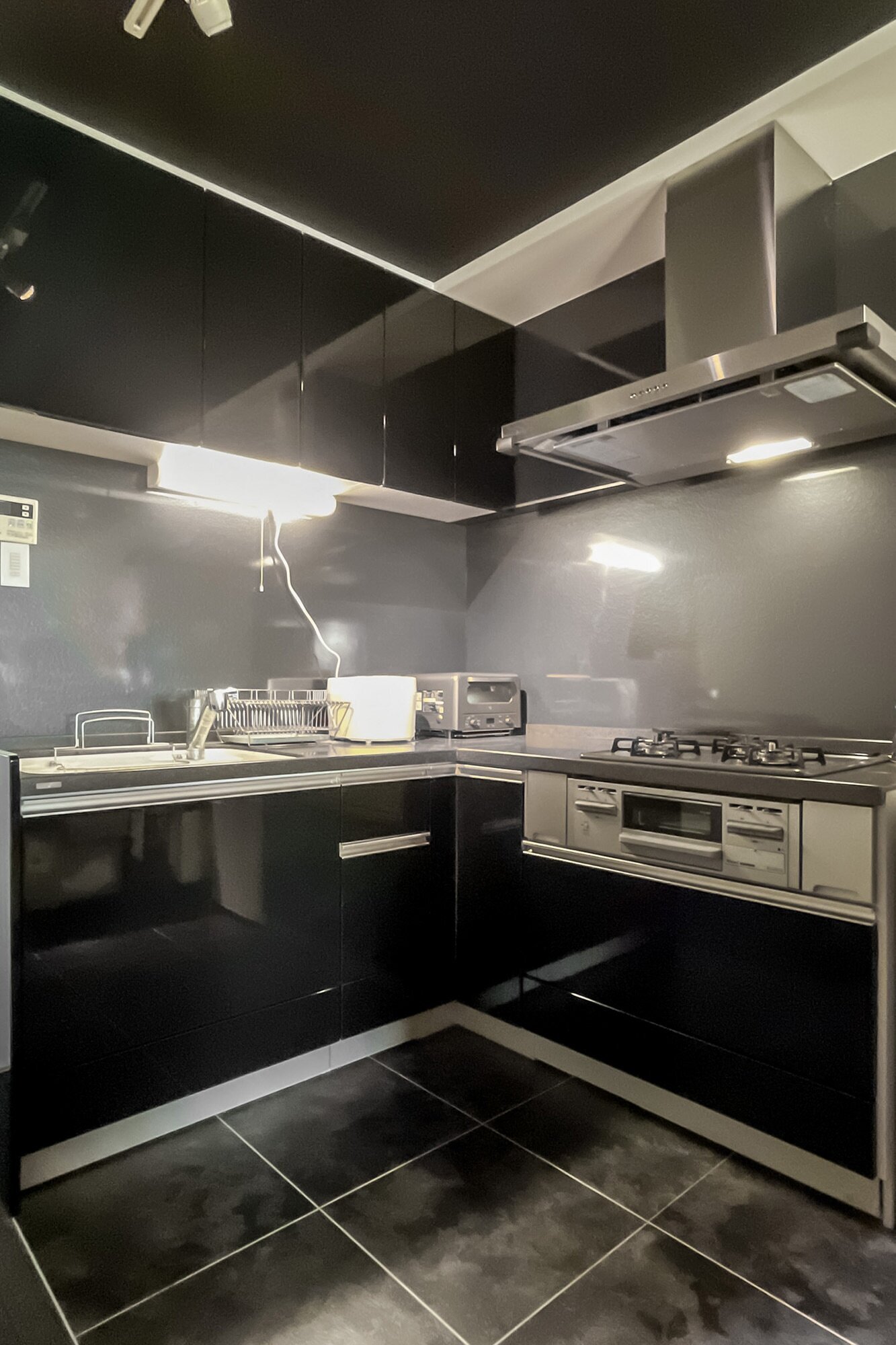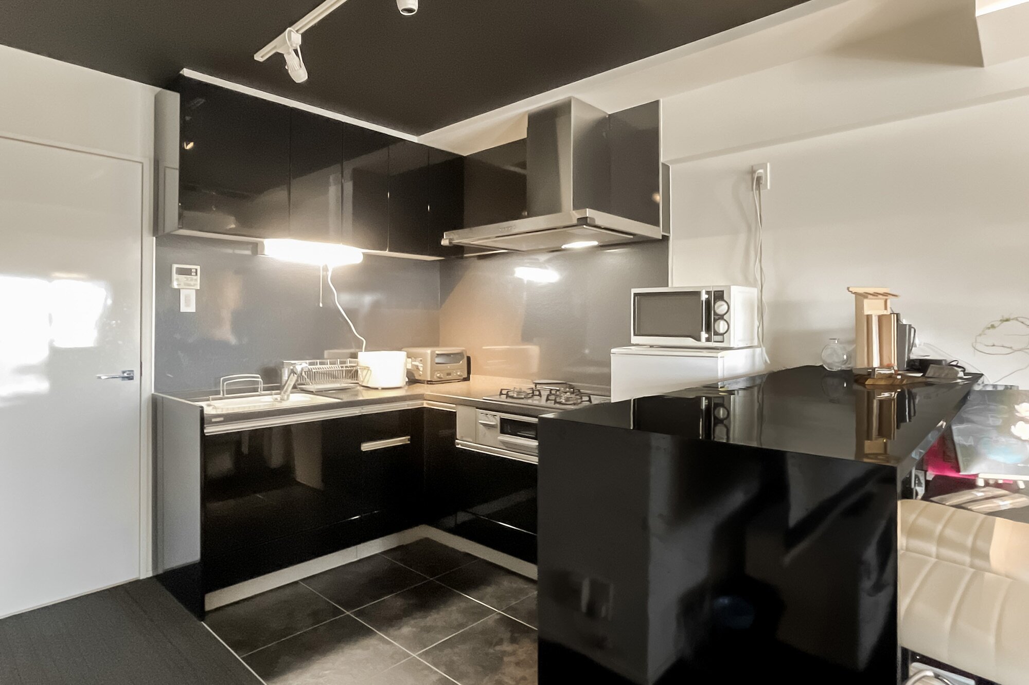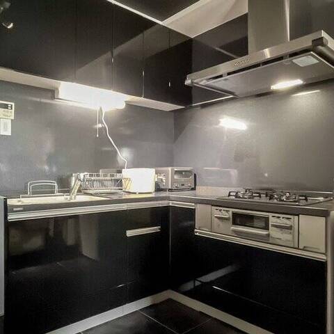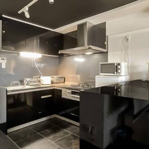 - 2015年にリノベーションされた住戸。使用感は現地でお確かめください。LDKの天井や床、水まわりにブラックが使われ、統一感のある内装。大人っぽい雰囲気です。